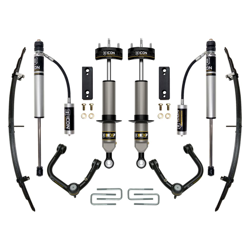 The ICON EXP suspension system for the Toyota Tacoma represents our entry level performance suspension system providing improved on- and off-road performance as well as front-end lift for a proper stance and fitment of up to 33" tires.