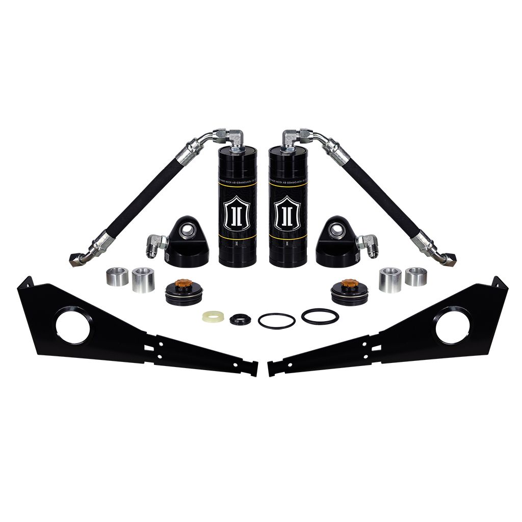 The ICON Vehicle Dynamics Coilover Reservoir Upgrade Kit is used to upgrade a set of ICON internal reservoir coilovers from a 2005-2023 Toyota Tacoma, 2007-2014 Toyota FJ Cruiser, or 2003-2024 Toyota 4Runner to remote reservoirs during a shock rebuild. The addition of remote reservoirs will greatly increase shock oil volume and heat dissipation surface area to resist overheating and cavitation under hard use, which can lead to damper fade. This kit includes all required components for the reservoir upgrade including top caps, reservoirs, reservoir brackets, hoses, seal kits and extension spacers to also convert the coilovers to extended travel units if desired.