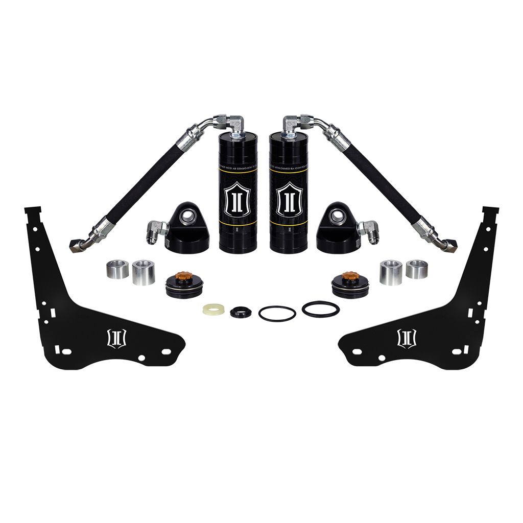 The ICON Coilover Reservoir Upgrade Kit is used to upgrade a set of ICON internal reservoir coilovers from a 2007-2021 Toyota Tundra or 2008-2022 Toyota Sequoia to remote reservoirs during a shock rebuild.