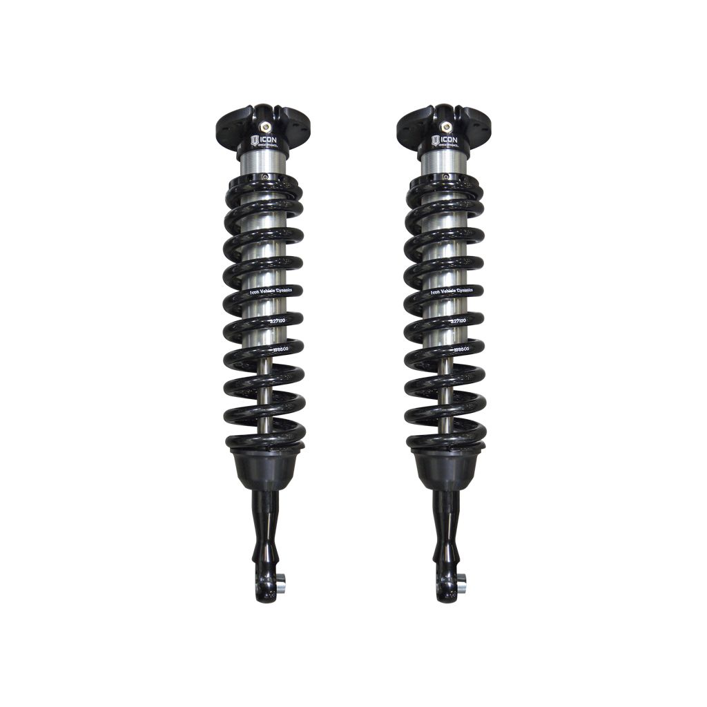 ICON Vehicle Dynamics V.S. 2.5 Series internal reservoir front coilover shocks are an incredible upgrade for the front end of the 2007-2021 Toyota Tundra and 2008-2022 Toyota Sequoia. These adjustable coilovers allow up 1-3” of lift height adjustability, allowing the use of larger, more aggressive wheel and tire combinations. ICON’s Vehicle-specific shock length and valving, their large 2.5” shock body with increased piston surface area over stock components yield the maximum travel possible along with superior ride quality and suspension performance both on- and off-road. When paired with ICON 2.0 or 2.5 Aluminum Series rear shock absorbers vehicle control will be balanced front to rear, resulting in the best overall driving experience for your Toyota Tundra or Sequoia.