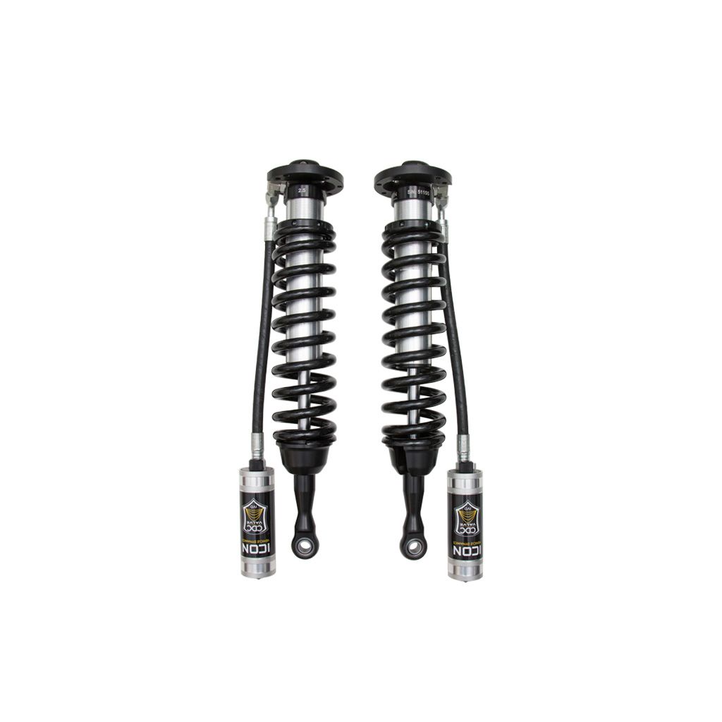 The ICON Vehicle Dynamics V.S. Series 2.5” remote reservoir coilover shocks w/ CDCV are an incredible upgrade for the front end of the 2007-2021 Toyota Tundra and 2008-2022 Toyota Sequoia. ICON’s Vehicle-specific valving provides a sport tuned feel on and off-road while offering 1-3” of lift height adjustability for use of larger, more aggressive wheel and tire combinations. ICON's larger 2.5” shock body and increased piston area over stock components provides improved damping ability and outstanding ride characteristics across varying types of terrain. Remote reservoirs ensure optimum performance by increasing the duration of consistent damping regardless of situation, keeping the shocks at a cooler operating temperature during heavy use. The ICON CDC Valve upgrade is included for those desiring an easy way to tune the ride externally with 10 adjustment settings from soft to hard. When paired with ICON rear 2.0 Aluminum Series or 2.5 Series shocks, vehicle control will be balanced front to rear resulting in the best overall driving experience for your Tundra or Sequoia.