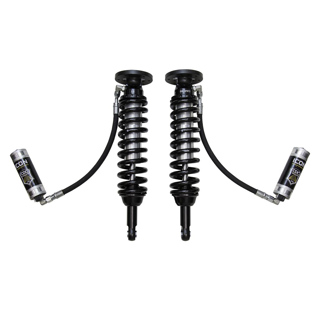 The ICON Vehicle Dynamics V.S. Series 2.5” remote reservoir coilover shocks w/ CDCV are an incredible upgrade for the front end of the 2009-2013 Ford F150 2WD truck. ICON’s Vehicle-specific valving provides a sport tuned feel on and off-road while offering 1.75-2.63” of lift height adjustability for use of larger, more aggressive wheel and tire combinations. ICON's larger 2.5” shock body and increased piston area over stock components provides improved damping ability and outstanding ride characteristics across varying types of terrain. Remote reservoirs ensure optimum performance by increasing the duration of consistent damping regardless of situation, keeping the shocks at a cooler operating temperature during heavy use. The ICON CDC Valve upgrade is included for those desiring an easy way to tune the ride externally with 10 settings of adjustment from soft to hard. When paired with ICON rear 2.0 Aluminum Series or 2.5 Series shocks, vehicle control will be balanced front to rear resulting in the best overall driving experience for your Ford F150 2WD.