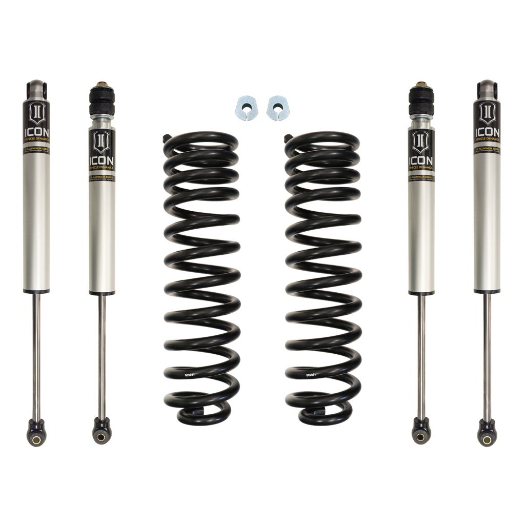 This ICON Vehicle Dynamics 2.5” suspension system is a great way to level your 4WD 2017-2019 Ford F250/350 Super Duty while drastically improving ride quality and performance. This entry level system is perfect for on-road and towing use, as well as mild off-road use like job site duty and washboard gravel roads. ICON's Stage 1 System is comprised of dual rate coil springs, alignment cams, and ICON 2.0 Aluminum Series front and rear shocks. With the endless hours ICON has spent testing and tuning our suspension components and shocks as a complete package, you can rest assured you have the best suspension solution on the market.