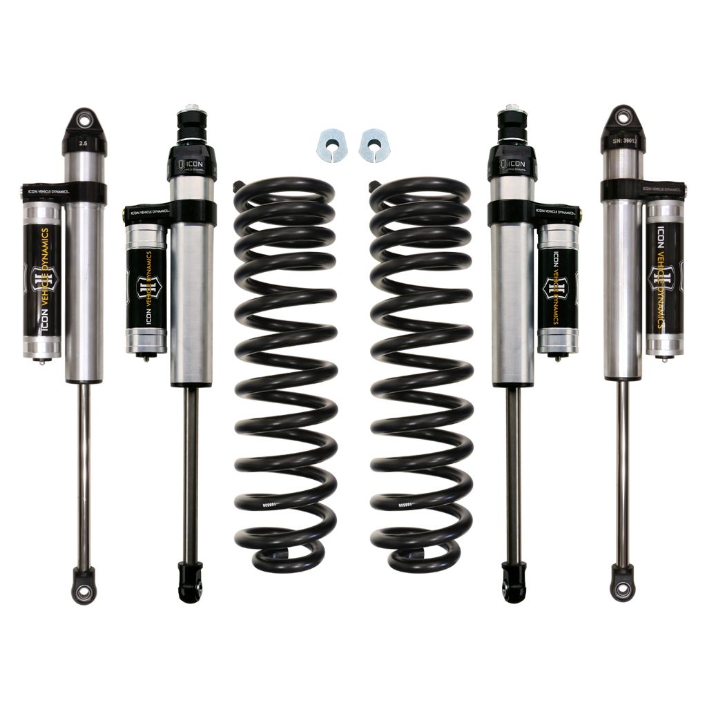 This ICON Vehicle Dynamics 2.5” suspension system is a great way to level your 4WD 2017-2019 Ford F250/350 Super Duty while drastically improving ride quality and performance. The Stage 2 system is perfect for on-road and off-road use including towing, job site duty and general off-road adventure. ICON's Stage 2 System is comprised of dual rate coil springs, alignment cams, and ICON 2.5 Aluminum Series front and rear piggyback reservoir shocks. With the endless hours ICON has spent testing and tuning our suspension components and shocks as a complete package, you can rest assured you have the best suspension solution on the market.