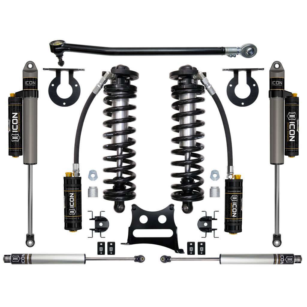 ICON's 2.5 VS Series Remote Reservoir Bolt-In Coilover Conversion Kit will add a new level of performance and adjustability to 2017-2022 F-250 and F-350 trucks. The advantage of utilizing a coilover conversion kit is that they have been designed to increase the overall damping ability of the vehicle while at the same time allowing for user-defined ride height adjustment. The 2.5" Remote Reservoir Coilover featured in these kits is based off of ICON’s 2.5 VS Series shock line – meaning that features like Eibach coil springs, FK Rod End bearings, and vehicle-specific valving come standard. Quality machined components and a fully serviceable design make for a product that will stand the test of time, yet retain the ability to be rebuilt or re-valved as necessary.