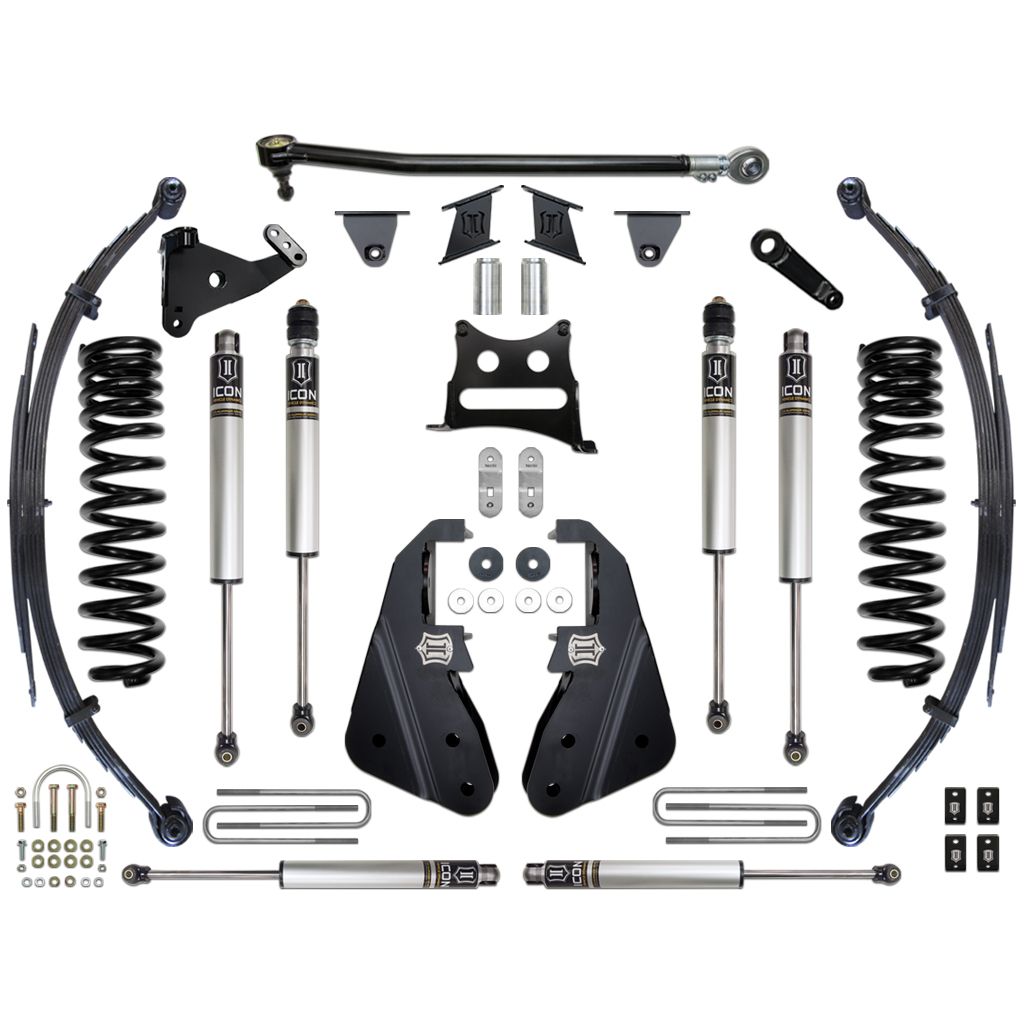 This ICON Vehicle Dynamics 7” suspension system is a great way to lift your 4WD 2017-2022 Ford F-250/F-350 Super Duty while drastically improving ride quality and performance. This entry level system is perfect for on-road and towing use, as well as mild off-road use like job site duty and washboard gravel roads. ICON's 7" Stage 1 System is comprised of dual rate coil springs, progressive leaf springs, radius arm drop brackets, adjustable track bar, dual opposing steering stabilizer kit, ICON 2.0 Aluminum Series front and rear shocks, plus all of the necessary hardware for installation. With the endless hours ICON has spent testing and tuning our suspension components and shocks as a complete package, you can rest assured you have the best suspension solution on the market.