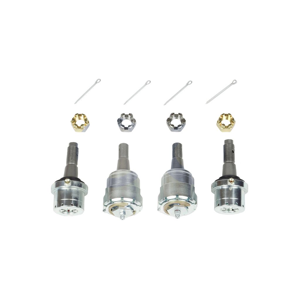 Rounding out this Stage 3 kit are a full set of front upper and lower Dynatrac HD BallJoints. Dynatrac HD Balljoints feature heat-treated high-strength billet bodies with chromoly stems along with a heat-treated, precision-ground stainless-steel ball. Unique seals prevent contamination, and the ball joints have greaseable fittings and PTFE-coated wear points to provide a long, durable service life. These high-end ball joints also use an exclusive snap-ring safety feature design to prevent the ball joint bodies from moving in the axle housing under the heavy weight of large tires in extreme terrain. A Dynatrac installation kit is also included to make install a simple, straight forward process. The OEM ball joints often wear quickly with larger off-road tires, many road miles, or extreme off-roading. Replacing worn factory ball joints with Dynatrac HD BallJoints, built specifically for the rigorous demands of these vehicles, provides a long-term solution and help maximize the overall drivability of the Jeep Wrangler and Jeep Gladiator.