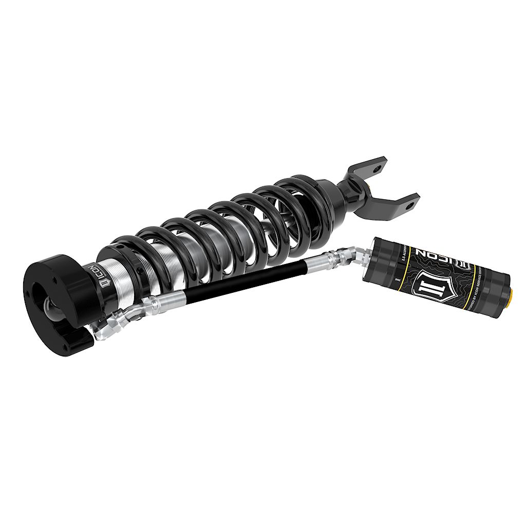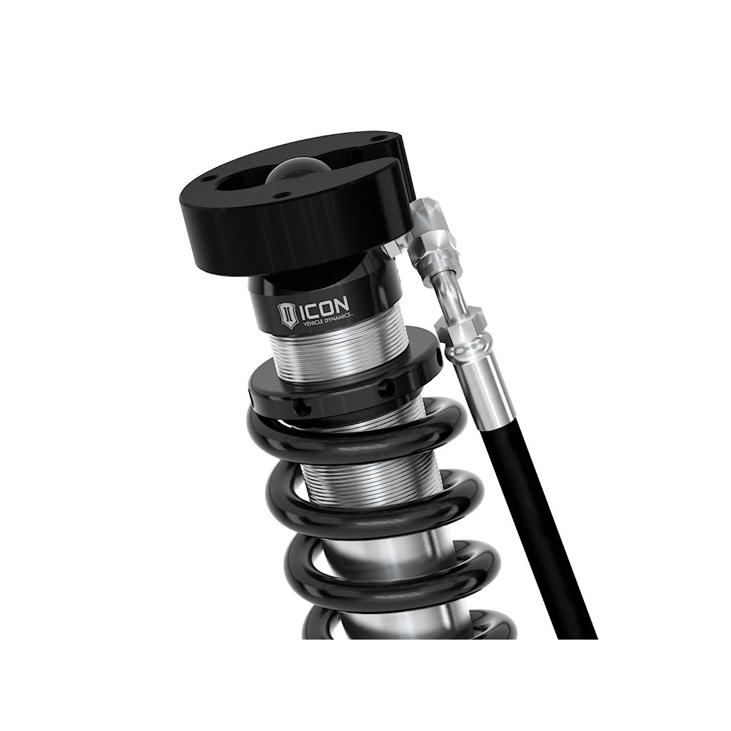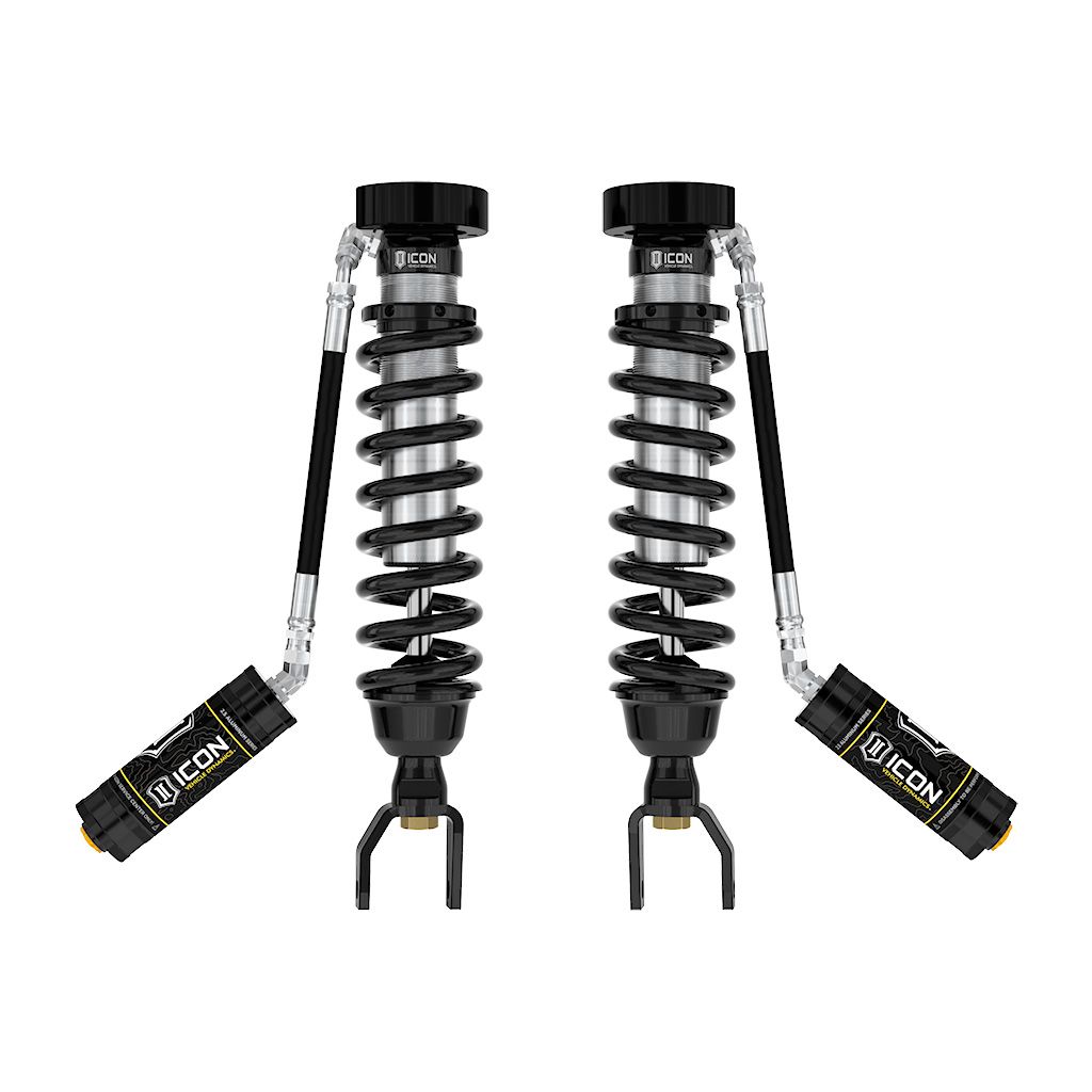 ICON Vehicle Dynamics V.S. 2.5 Series coilover shocks are an incredible upgrade for the front end of 2019-2023 Ram 1500 trucks. ICON’s Vehicle-specific valving provides a sport tuned feel on and off-road while 2-3” of lift height adjustability allows the use of larger, more aggressive wheel and tire combinations. The larger 2.5” shock body and increased piston area over stock components and application specific length to maximize wheel travel provide improved damping ability and outstanding ride characteristics across varying types of terrain. These remote reservoir coilovers will maintain lower operating temperatures and offer more consistent operation during extended or aggressive off-road use compared to internal reservoir versions. When paired with ICON 2.0 Aluminum Series or 2.5 Aluminum Series rear shocks vehicle control will be balanced front to rear, resulting in the best overall driving experience for your Ram 1500 truck.