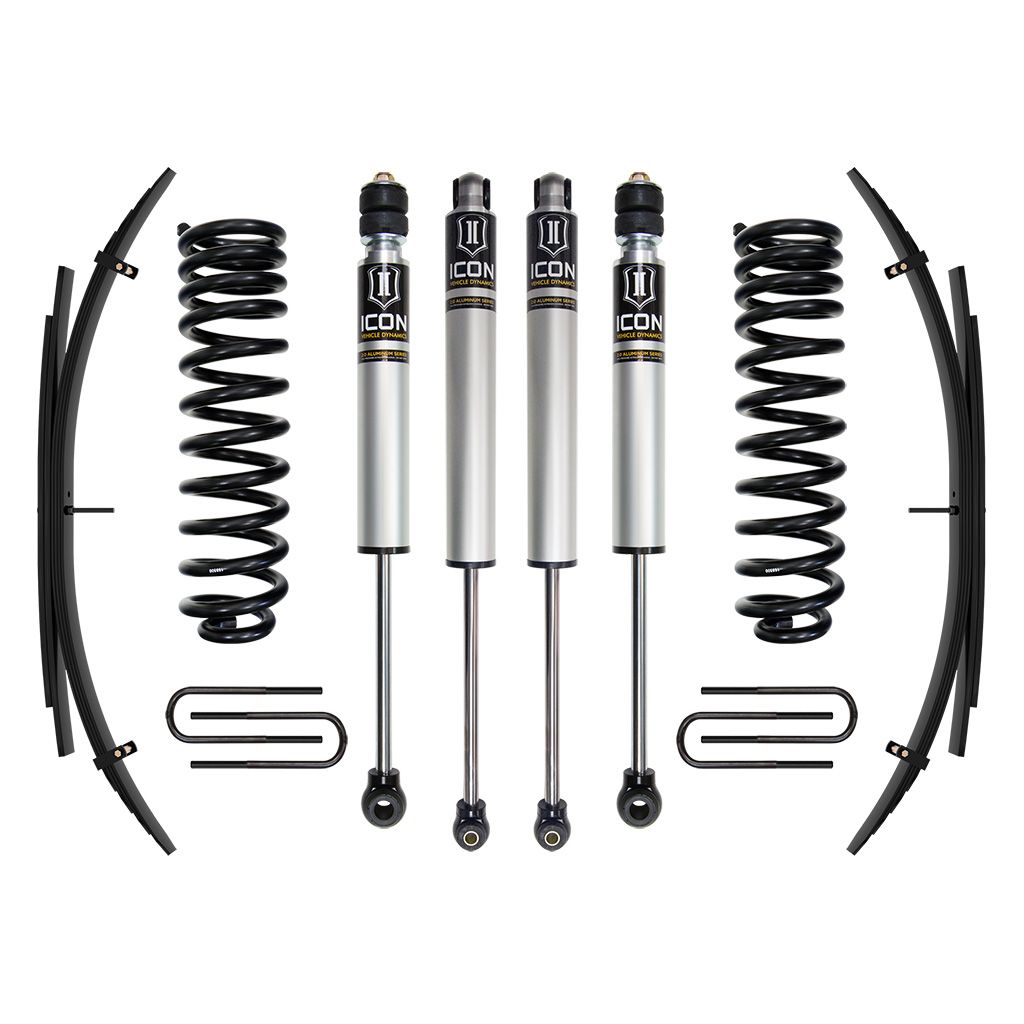 The ICON 2.5” suspension system is a great way to lift your 4WD 2020-2022 Ford F-250/F-350 Super Duty while improving ride quality and performance. This entry level system is great for towing, rough construction site terrains, and country dirt roads all while keeping a smooth highway feel. ICON's Stage 1 System is comprised of dual rate coil springs, alignment cams for adding caster, rear leaf spring expansion packs with blocks and U-bolts for a more compliant ride and reduced axle wrap, and ICON 2.0 Aluminum Series internal reservoir shocks front and rear. With the endless hours ICON has spent testing and tuning our suspension components and shocks as a complete package, you can rest assured you have the best suspension solution on the market.