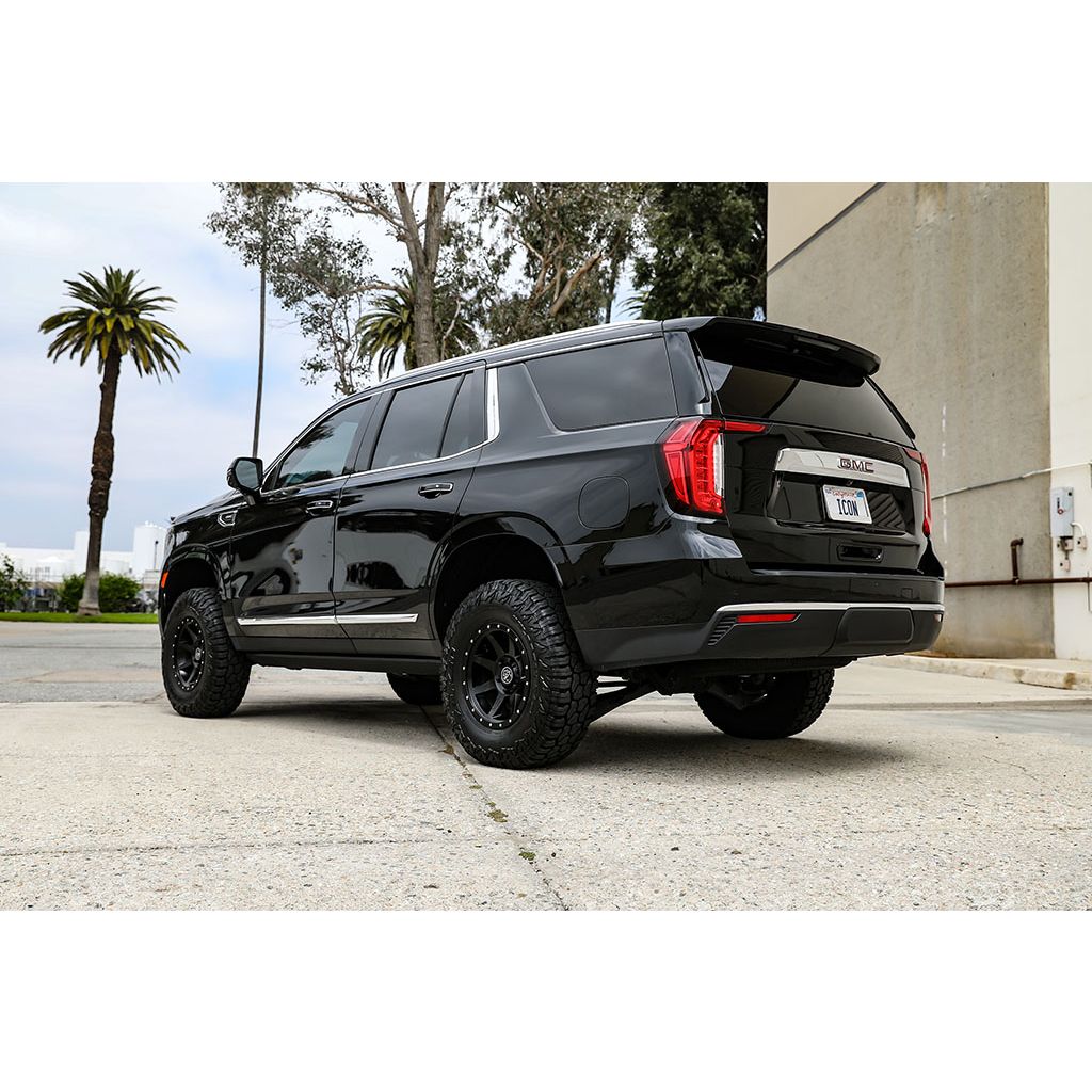 The ICON Vehicle Dynamics Toe Link Kit for the 2021-2023 Chevrolet Tahoe/Suburban and 2021-2023 GMC Yukon and Yukon XL is a requirement when lifting the rear of these vehicles to prevent undesirable handling characteristics and tire wear.