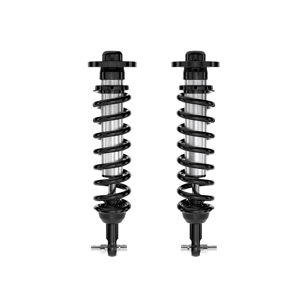 ICON Vehicle Dynamics V.S. Series 2.5” coilover shocks are an incredible upgrade for the front end of 2021-2023 Ford F-150 2WD trucks. ICON’s Vehicle-specific valving provides a sport tuned feel on and off-road while 0-3” lift height adjustability over stock allows the use of larger, more aggressive wheel and tire combinations. The larger 2.5” shock body and increased piston area over stock components provides improved damping ability and outstanding ride characteristics across varying types of terrain. When paired with ICON rear 2.0 Aluminum Series or 2.5 Aluminum Series shocks vehicle control will be balanced front to rear, resulting in the best overall driving experience for your F-150 truck.