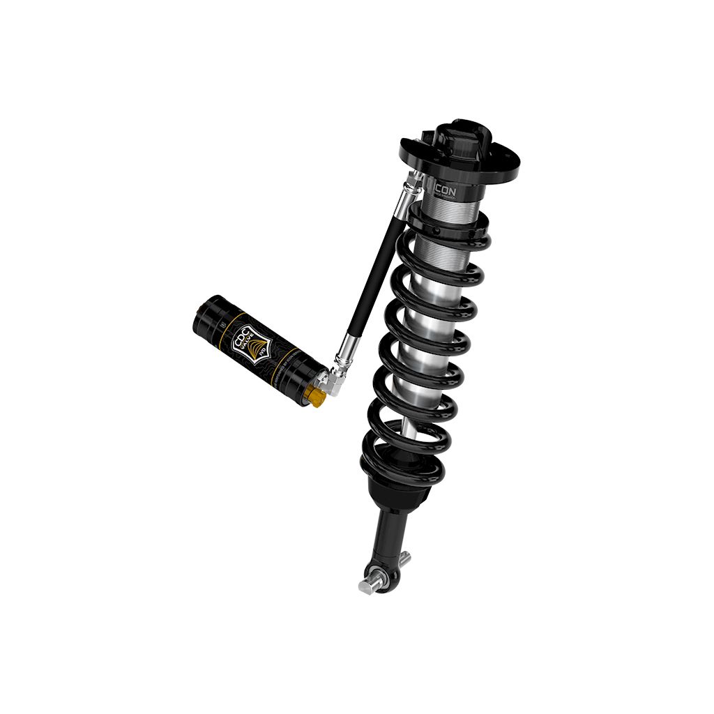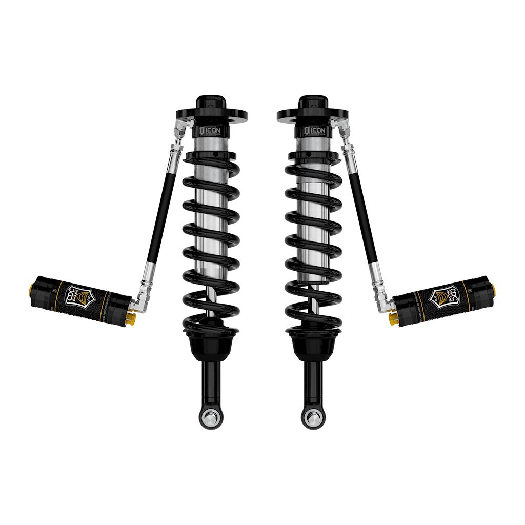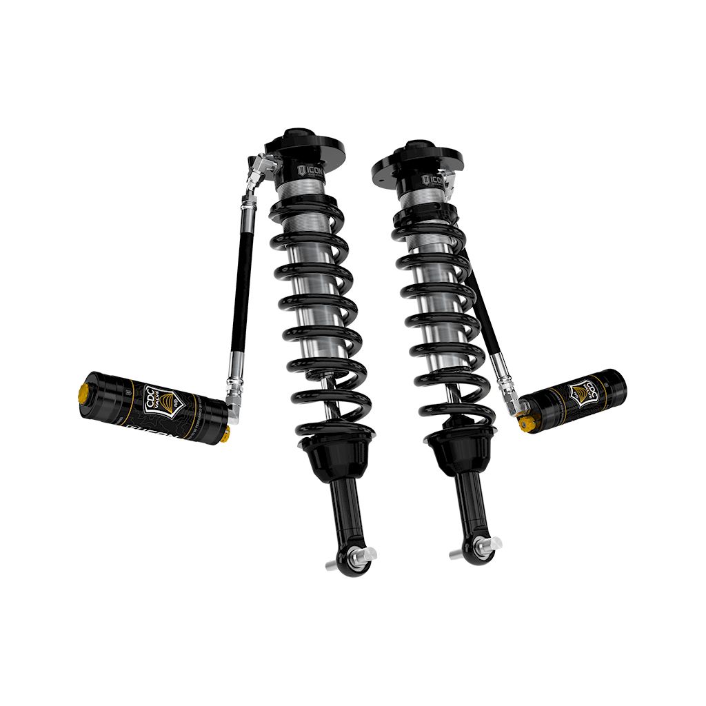 ICON Vehicle Dynamics V.S. Series 2.5” coilover shocks are an incredible upgrade for the front end of 2021-2024 Ford F-150 4WD trucks. ICON’s Vehicle-specific valving provides a sport tuned feel on and off-road while 2.75-3.5” of lift height adjustability allows the use of larger, more aggressive wheel and tire combinations. The larger 2.5” shock body and increased piston area over stock components provides improved damping ability and outstanding ride characteristics across varying types of terrain. Remote reservoirs ensure optimum performance by increasing the duration of consistent damping regardless of situation, keeping the shocks at a cooler operating temperature during heavy use. ICON's exclusive Compression Damping Control Valves are included for precisely dialing in your suspension performance. CDCV controls fluid flow under compression, allowing you to achieve the perfect tune whether driving on the street, slow-crawling through the rocks or mobbing across the desert at full throttle. When paired with ICON rear 2.0 Aluminum Series or 2.5 Series shocks vehicle control will be balanced front to rear, resulting in the best overall driving experience for your F-150 truck.