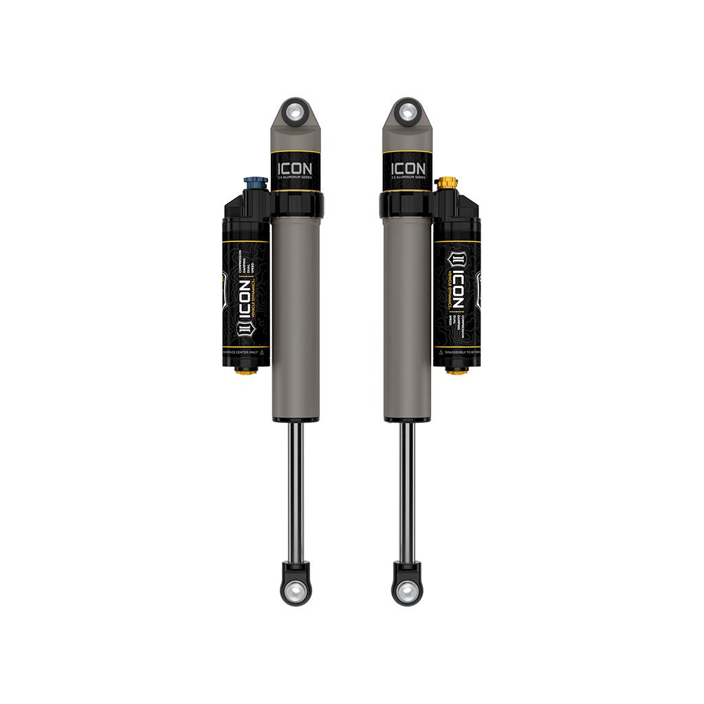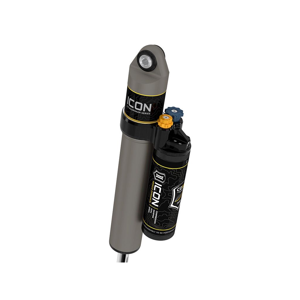 ICON Vehicle Specific (V.S.) 2.5 Aluminum Series shocks with CDCV are designed and built to give your vehicle outstanding performance off-road and a smooth ride on the street. These shocks are configured specifically for each application in both length and damping tune. Like all ICON'S Shock Absorbers, V.S. 2.5 Aluminum Series shocks are 100% rebuildable and 100% revalveable. For piggyback and specific remote reservoir applications, ICON'S unique use of a 6061 billet aluminum manifold a few inches below the top cap of the shock creates an internal Bump Zone that when used creates an additional 20% of damping force. This additional force helps prevent harsh bottom outs and controls the suspension when compressing at high velocity. ICON's exclusive Compression Damping Dual Speed (CDXS) valves are included for precisely dialing in your suspension performance. CDXS controls fluid flow under compression, with independent adjustability of high speed and low speed compression force. 10 discreet detented settings for both low and high-speed adjustment knobs allow separate adjustments for handling response and overall aggressiveness.