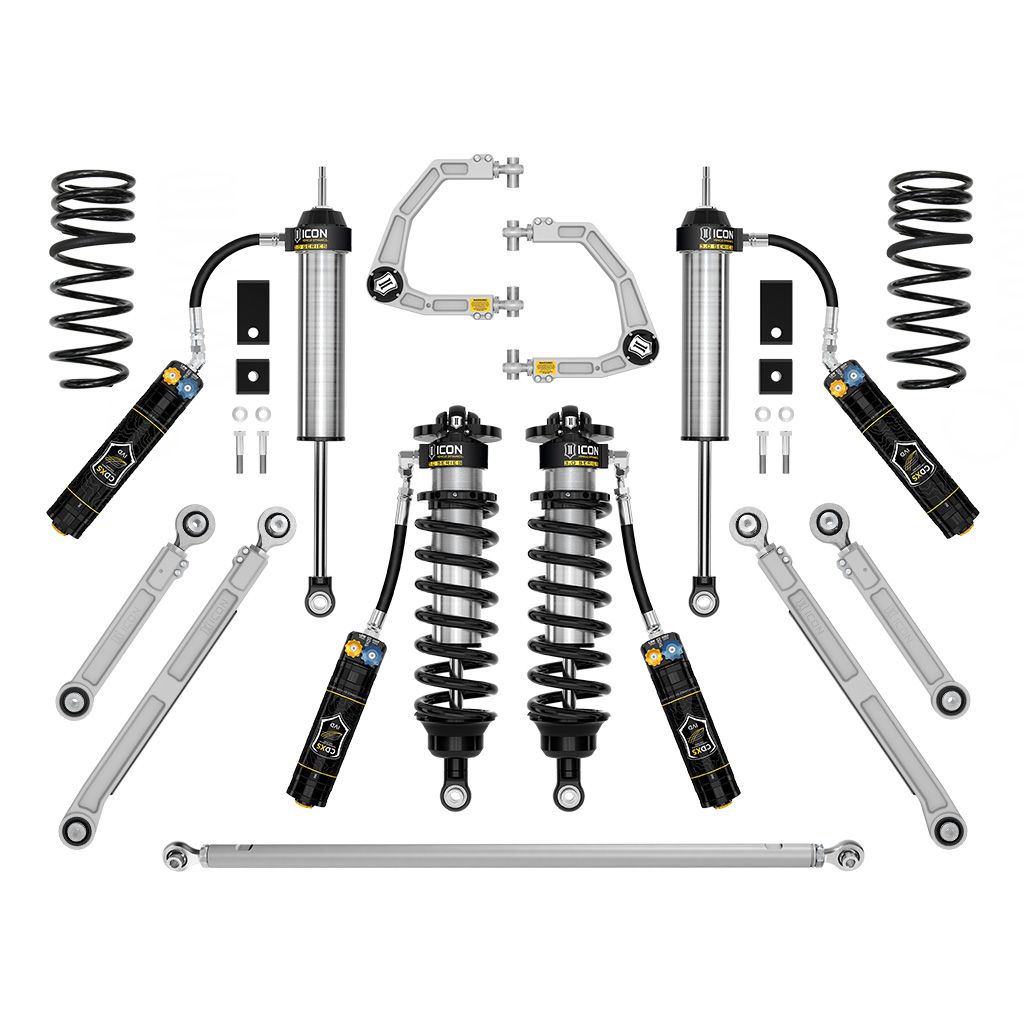 Rounding out the Stage 3 suspension system are 3.0 Series rear remote reservoir shocks specially tailored for the 2022-2025 Tundra to yield a 20% increase in wheel travel over stock. 3.0 Series shocks also boast 50% more piston surface area compared to 2.5 Series shocks, offering outstanding performance off-road and a smooth ride on the street. Increased internal oil volume and more external surface area compared to 2.5 Series Shocks, plus their remote reservoirs, offer even greater heat dissipation and resistance to shock fade under hard use. Also equipped with CDXS, these offer 10 settings of low and high speed compression damping adjustment from soft to hard. Their pairing with the ICON V.S. 3.0 Series CDXS front coilovers results in balanced vehicle control from front to rear and an excellent overall driving experience for your Tundra.
