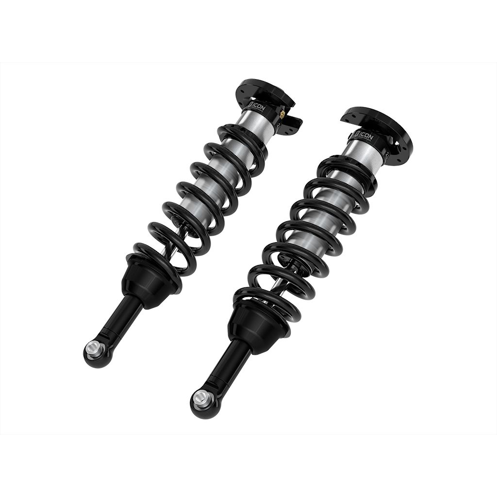 ICON Vehicle Dynamics V.S. 2.5 Series internal reservoir front coilover shocks are an incredible upgrade for the front end of the 2022-2025 Toyota Tundra and 2023-2025 Toyota Sequoia. These adjustable coilovers allow up to 1.25-3.5” of lift height adjustability on a Tundra or 3-4.5" of lift height adjustability on a Sequoia, allowing the use of larger, more aggressive wheel and tire combinations. ICON’s Vehicle-specific shock length and valving along with the larger 2.5” shock body and increased piston area over stock components yield the maximum travel possible along with superior ride quality and suspension performance both on- and off-road. When paired with ICON 2.0 or 2.5 Aluminum Series rear shock absorbers vehicle control will be balanced front to rear, resulting in the best overall driving experience for your Toyota Tundra or Sequoia.