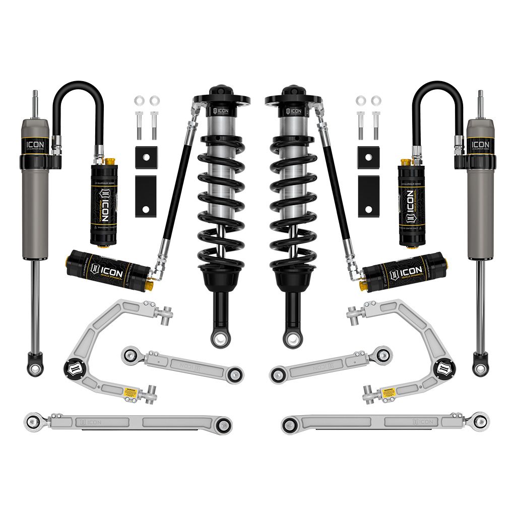 Rounding out the Stage 10 suspension system are 2.5 Aluminum Series rear remote reservoir shocks specially tailored for the 2022-2025 Tundra. The 2.5 Aluminum Series shocks’ larger diameter offers outstanding performance off-road and a smooth ride on the street. Remote reservoirs ensure optimum performance by increasing the duration of consistent damping regardless of situation, keeping the shocks at a cooler operating temperature during heavy use. They also feature a unique internal Bump Zone that when used creates an additional 20% of damping force to help better control hard bottom outs. Also equipped with CDC Valves, these offer 10 settings of compression damping adjustment from soft to hard. Their pairing with the ICON V.S. 2.5 Series CDCV front coilovers results in balanced vehicle control from front to rear and an excellent overall driving experience for your Tundra.