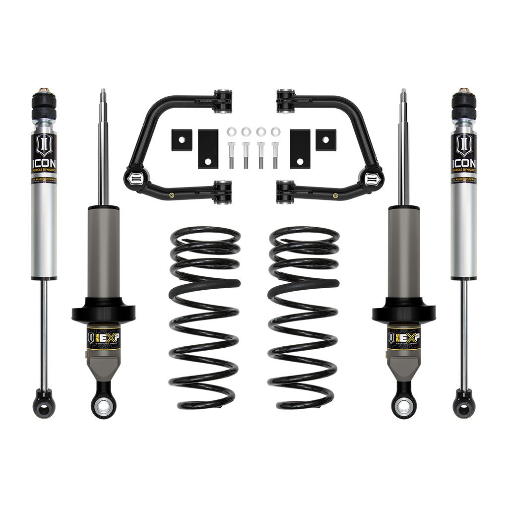 The ICON Stage 2 tubular suspension system for the Sequoia provides improved performance, better alignment specs as well as front/rear-end lift and leveling for a proper stance and fitment of up to 35" tires.
