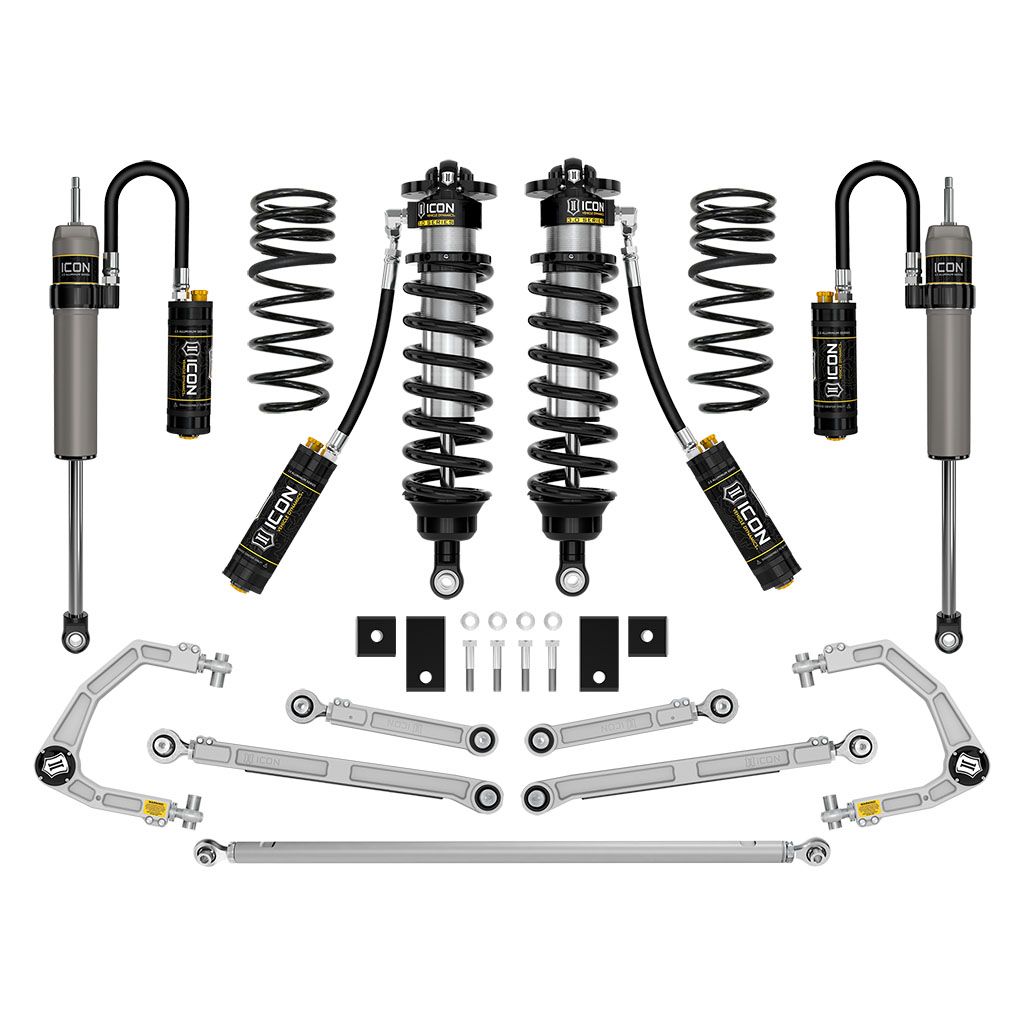Stage 1 includes 3.0 Series CDCV coilovers for 3-4.25” of front lift, greater performance, and 35” tire fitment. UCAs, rear links and track bar provide alignment correction and rear coils with 2.5 Series CDCV rear shocks balance the tuning.