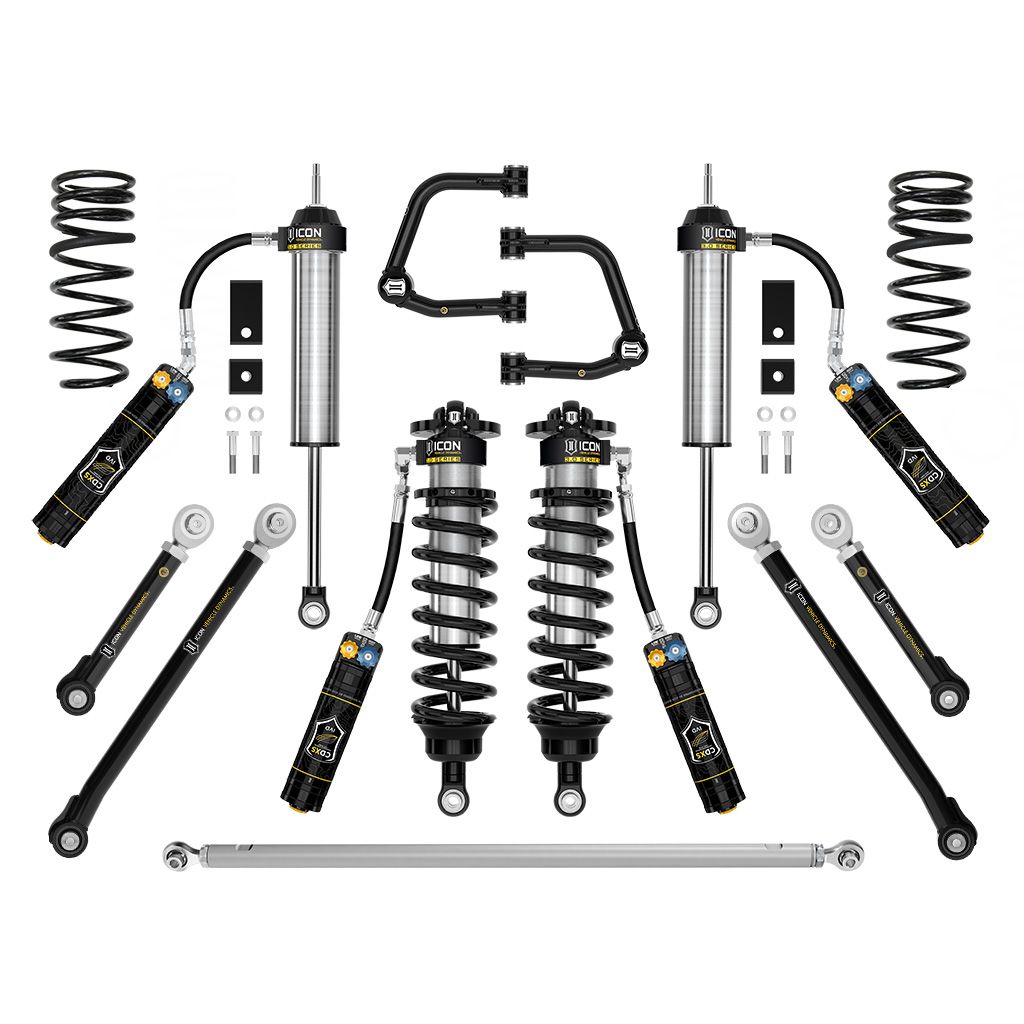 Stage 2 includes 3.0 Series CDXS coilovers for 3-4.25” of front lift, greater performance, and 35” tire fitment. UCAs, rear links and track bar provide alignment correction and rear coils with 3.0 Series CDXS rear shocks balance the tuning.