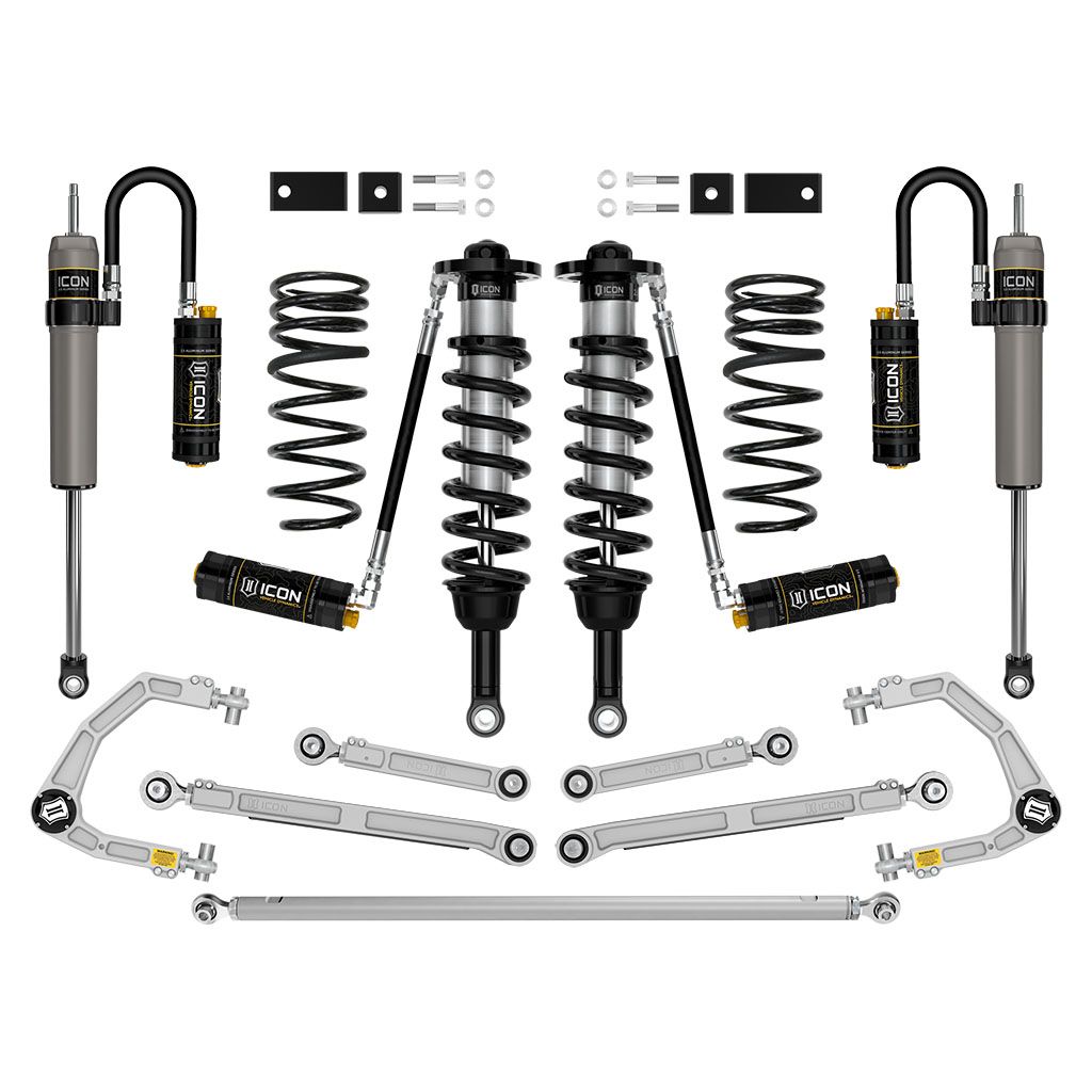 Stage 10 includes 2.5 Series CDCV coilovers for 3-4.5” of front lift, greater performance, and 35” tire fitment. UCAs, rear links and track bar provide alignment correction and rear coils with 2.5 Series CDCV rear shocks balance the tuning.