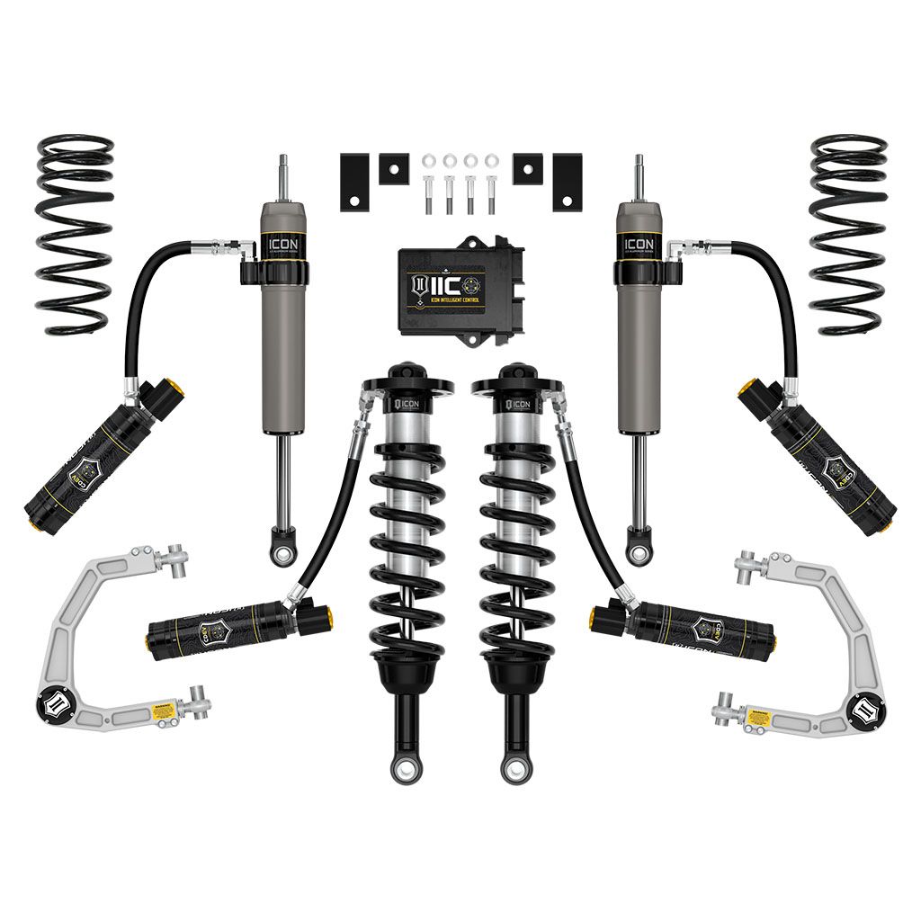 Stage 11 includes 2.5 Series CDEV remote reservoir coilovers for 3-4.5” of front lift, greater performance, and 35” tire fitment. UCAs provide alignment correction and rear coils with 2.5 Series remote CDEV rear shocks balance the tuning.