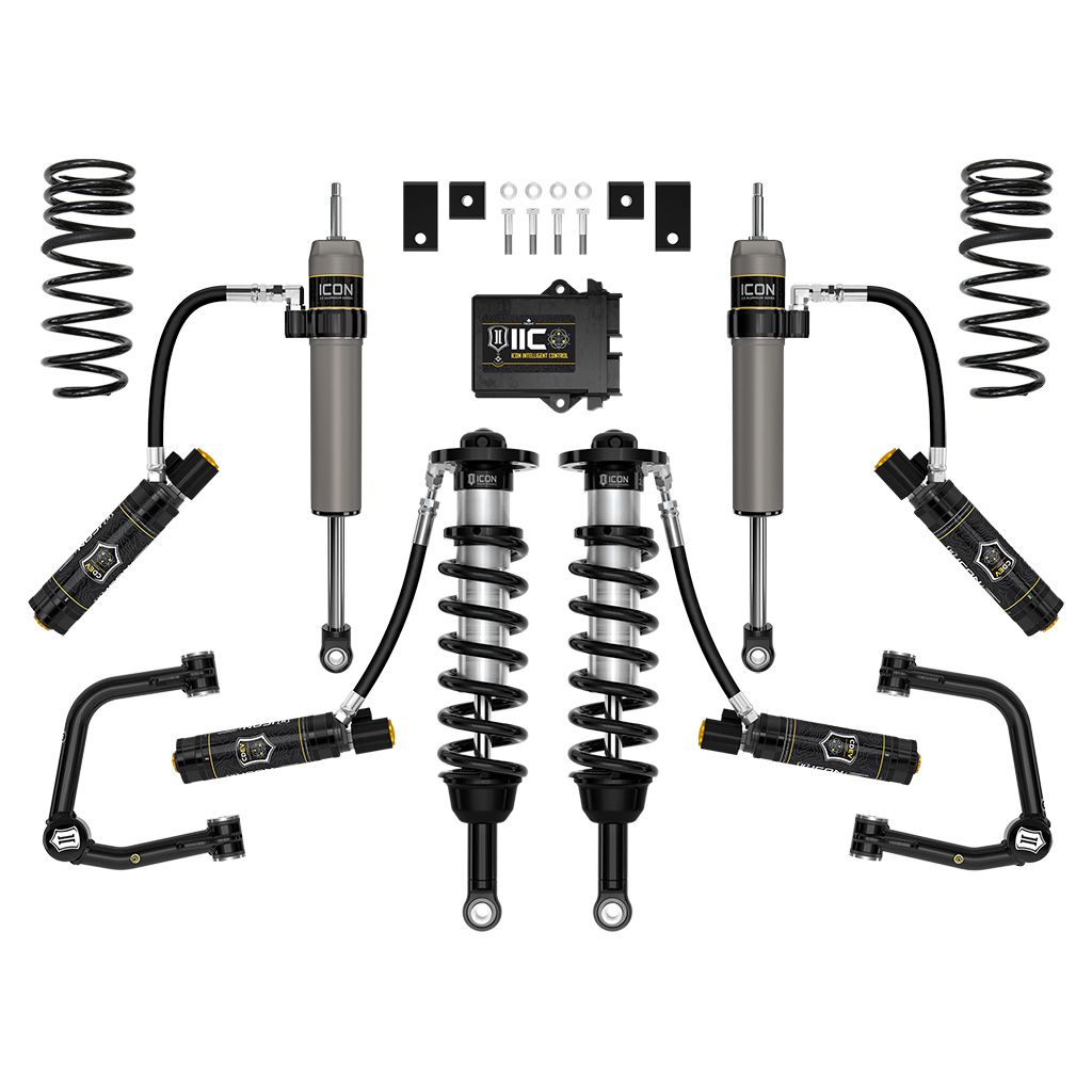 Stage 11 includes 2.5 Series CDEV remote reservoir coilovers for 3-4.5” of front lift, greater performance, and 35” tire fitment. UCAs provide alignment correction and rear coils with 2.5 Series remote CDEV rear shocks balance the tuning.