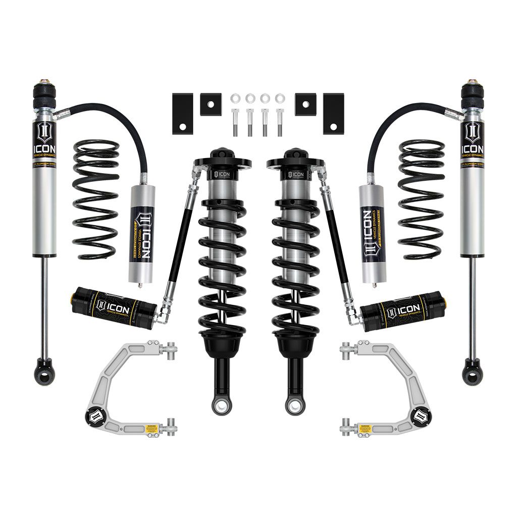 Stage 6 includes 2.5 Series remote reservoir coilovers for 3-4.5” of front lift, greater performance, and 35” tire fitment. Billet UCAs provide alignment correction and rear coils with 2.0 Series rear shocks balance the tuning.