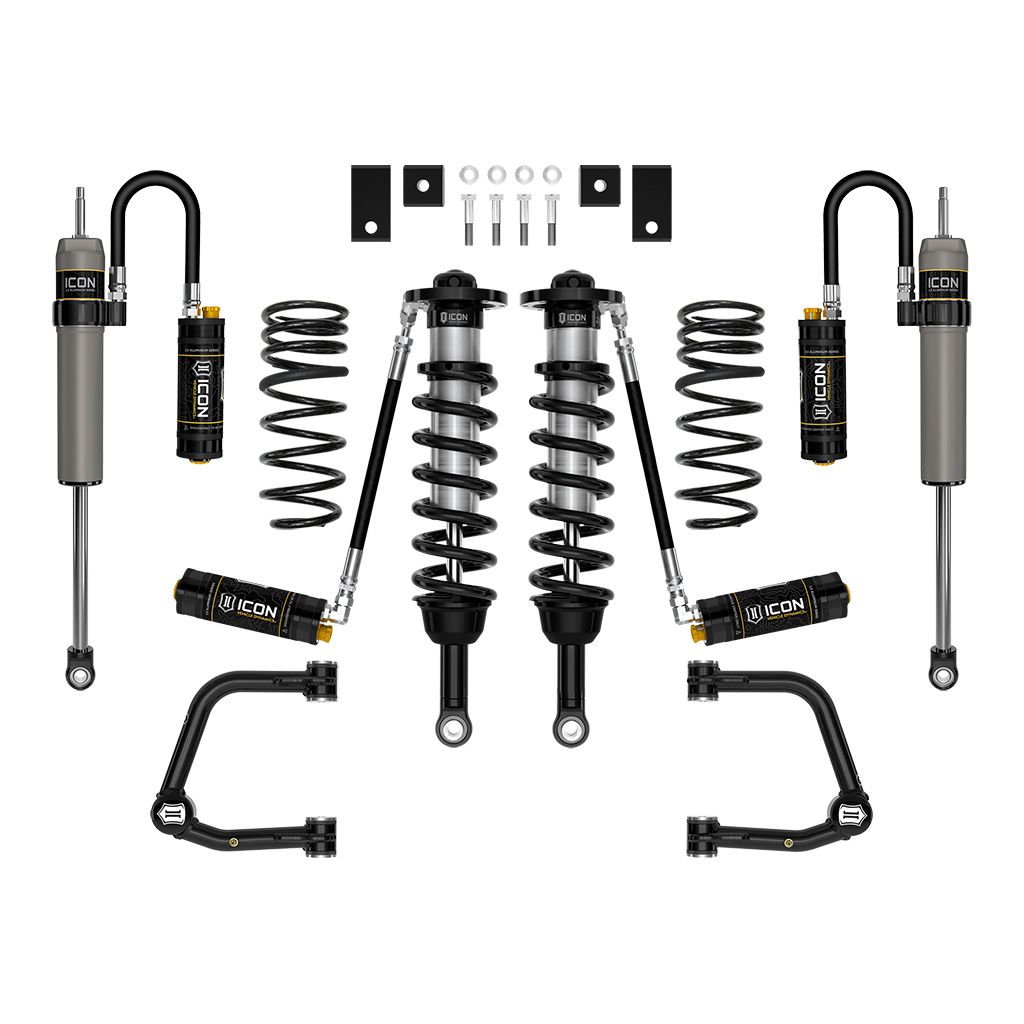 Stage 9 includes 2.5 Series CDCV remote reservoir coilovers for 3-4.5” of front lift, greater performance, and 35” tire fitment. UCAs provide alignment correction and rear coils with 2.5 Series remote CDCV rear shocks balance the tuning.