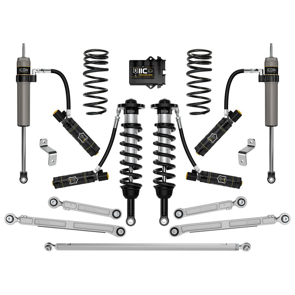 The ICON Stage 10 suspension system for the Sequoia TRD Pro is a full coilover performance suspension system, providing improved performance as well as front/rear-end lift and leveling for a proper stance and fitment of up to 35" tires.