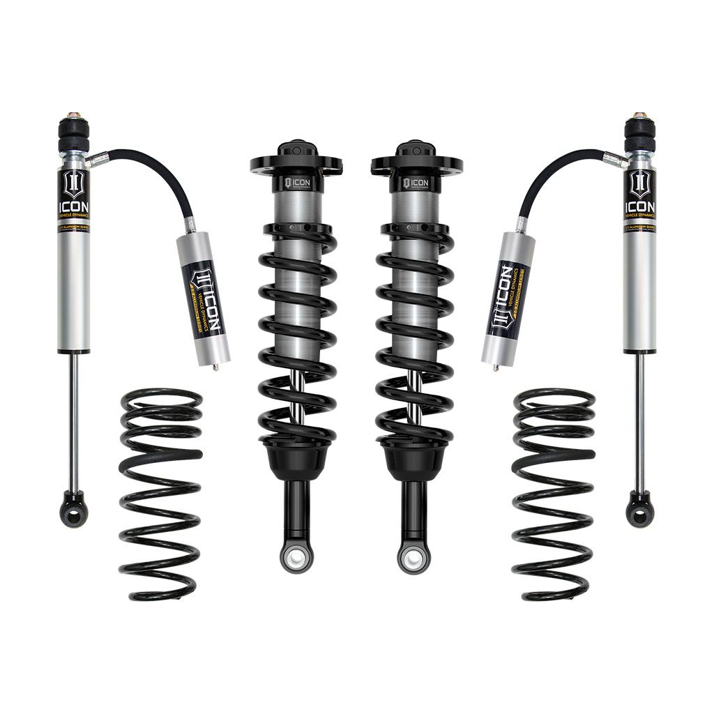 The ICON Stage 2 suspension system for the Sequoia TRD Pro is a full coilover performance suspension system, providing improved performance as well as front/rear-end lift and leveling for a proper stance and fitment of up to 35" tires.