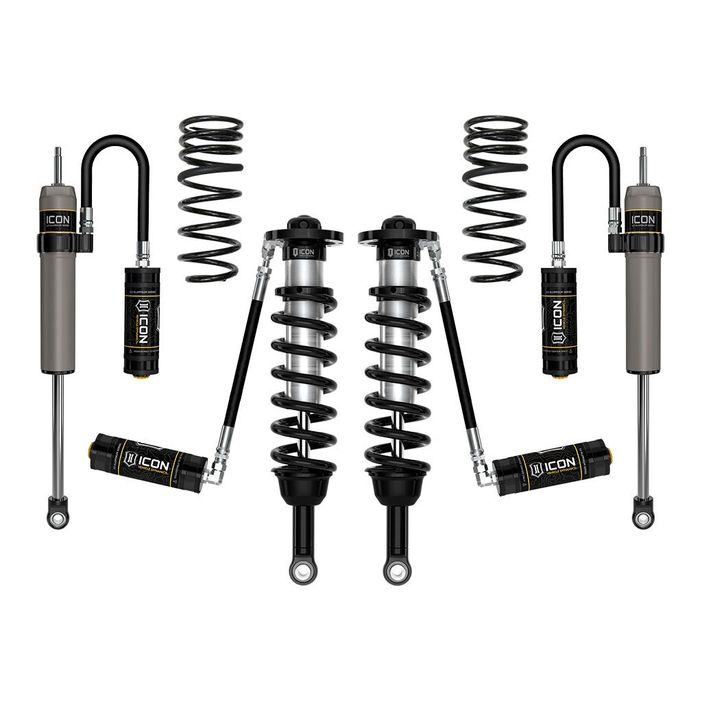 The ICON Stage 3 suspension system for the Sequoia TRD Pro is a full coilover performance suspension system, providing improved performance as well as front/rear-end lift and leveling for a proper stance and fitment of up to 35" tires.