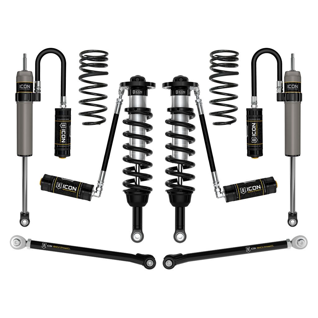 The ICON Stage 4 suspension system for the Sequoia TRD Pro is a full coilover performance suspension system, providing improved performance as well as front/rear-end lift and leveling for a proper stance and fitment of up to 35" tires.