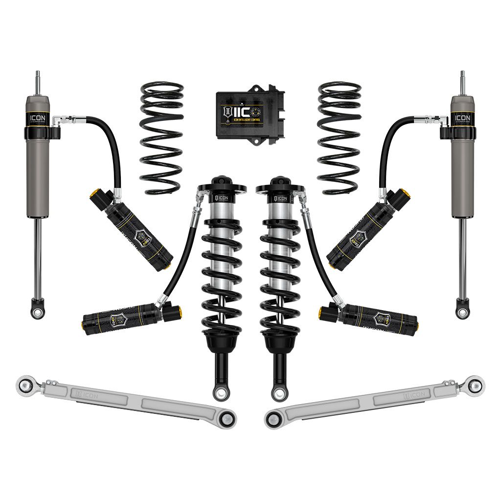 The ICON Stage 9 suspension system for the Sequoia TRD Pro is a full coilover performance suspension system, providing improved performance as well as front/rear-end lift and leveling for a proper stance and fitment of up to 35" tires.