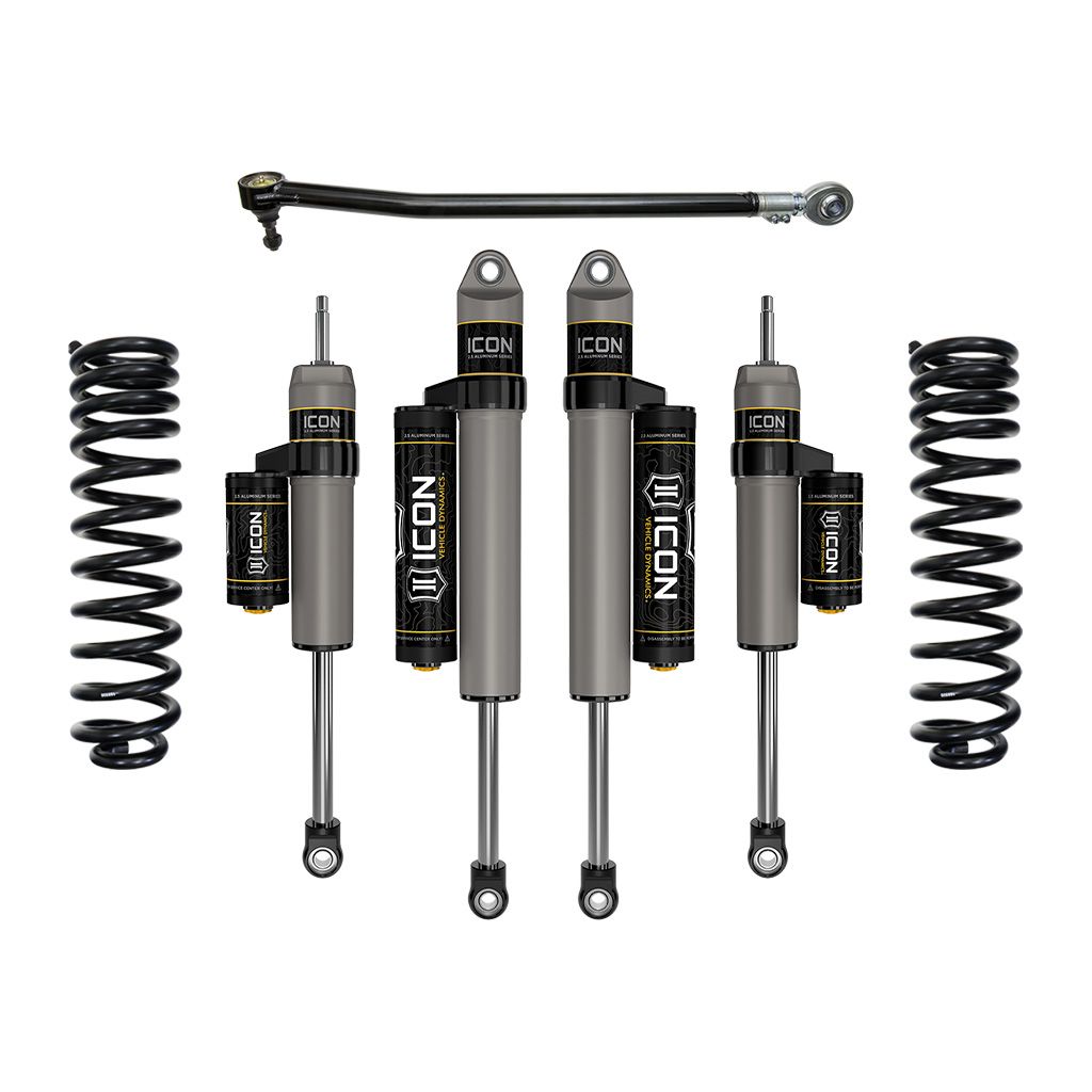 This ICON Vehicle Dynamics 2.5” suspension system is a great way to level your 4WD 2023 Ford F-250/F-350 Super Duty while drastically improving ride quality and performance. The Stage 3 system is perfect for on-road and off-road use including towing, job site duty and spirited off-road adventure. ICON's Stage 3 System is comprised of dual rate coil springs optimized for trucks equipped with diesel engines, alignment cams, ICON 2.5 Aluminum Series front and rear piggyback reservoir shocks, and an adjustable track bar designed specifically for the 2017-2024 Super Duty. With the endless hours ICON has spent testing and tuning our suspension components and shocks as a complete package, you can be rest assured you have the best suspension solution on the market.
