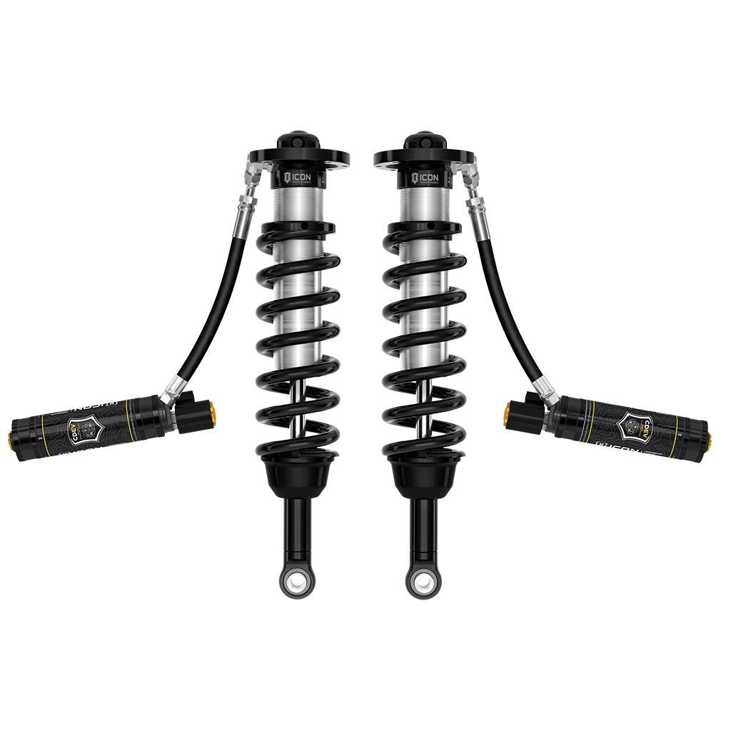 ICON 2.5 Series front coilover shocks are an incredible upgrade for the Toyota Land Cruiser 250. These adjustable coilovers allow up 1.25-3” of lift with vehicle-specific shock length and valving for superior ride quality and performance.