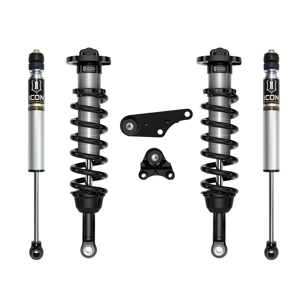 ICON Vehicle Dynamics 2024-2025 Toyota Tacoma suspension systems are designed with maximum performance and the serious driver in mind. ICON engineers’ primary focus is to increase wheel travel and damping ability, which translates into outstanding vehicle control and ride quality both on- and off-road. The Stage 1 system includes vehicle-specific tuned 2.5 Series coilover shocks featuring internal reservoirs for exceptional cooling properties and ICON-engineered coil springs for superior vehicle “feel” through the range of travel. These coilovers are height adjustable from 1.25-3” of front lift height over stock, allowing the use of larger, more aggressive wheel and tire combinations. The combination of front differential drop brackets and ICON’s specifically designed coilover lengths maximizes the available front suspension travel and prevent CV bind. Additionally, polyurethane differential mounting bushings replace the soft OE bushings to help limit differential movement under load. ICON 2.0 Aluminum Series internal reservoir rear shocks utilize a vehicle-specific valving that balances the performance of the truck from front to rear. The ICON Vehicle Dynamics 2024-2025 Toyota Tacoma Stage 1 suspension system is an excellent choice for those drivers looking to enhance the capabilities of their pickup on the road as well as in the dirt.
