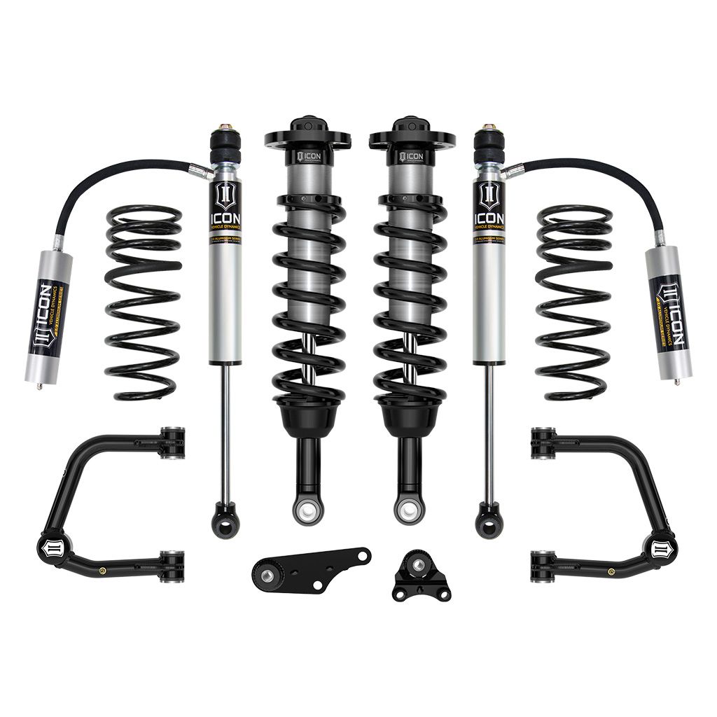 The rear dual rate coil design provides a softer ride rate with a firmer overload rate that combine to deliver on-road comfort with excellent load support, bottoming resistance, and superior off-road performance. These rear springs are designed to net .5" of rear lift over stock with approximately 600lbs of additional weight added to the rear, for a more aggressive stance and increased fender clearance for larger wheels and tires on more outfitted vehicles. ICON 2.0 Aluminum Series remote reservoir rear shocks provide improved cooling ability and utilize a vehicle-specific valving that balances the performance of the truck from front to rear. The ICON Vehicle Dynamics 2024-2025 Toyota Tacoma Stage 3 suspension system is an excellent choice for those drivers looking to enhance the capabilities of their pickup on the road as well as in the dirt.