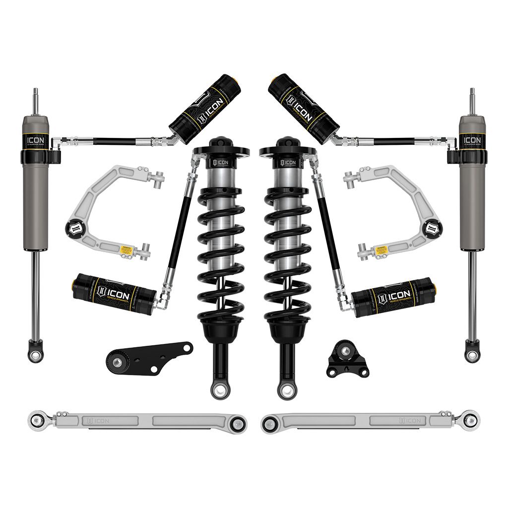 ICON billet rear lower links feature on-vehicle adjustability via the ICON double adjuster and employ dual-durometer greaseless bushings at one end, and massive FK rod ends at the other to provide the best combination of free articulation while isolating and damping road noise and vibrations. ICON 2.5 Aluminum Series remote reservoir rear shocks with integrated bump zones provide improved shock damping ability and utilize a vehicle-specific valving that balances the performance of the truck from front to rear. The ICON Vehicle Dynamics 2024-2025 Toyota Tacoma Stage 7 suspension system is an excellent choice for those drivers looking to enhance the capabilities of their pickup on the road as well as in the dirt.
