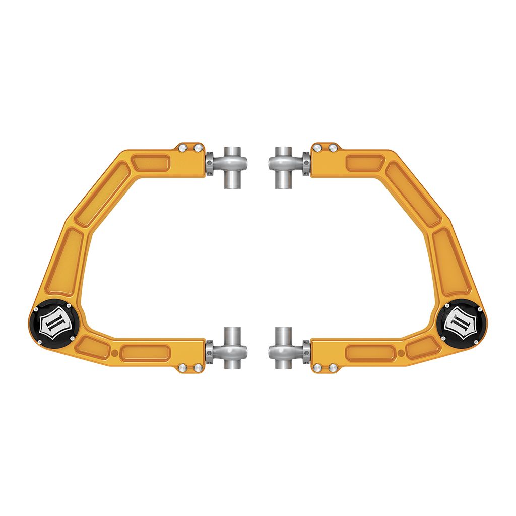 ICON billet UCAs are made from CNC machined 6061 aluminum and feature PTFE-lined rod ends and ICON’s Delta Joint PRO, a hardcore high-angle ball joint that combines the durability of a ball joint with the performance of a uniball.