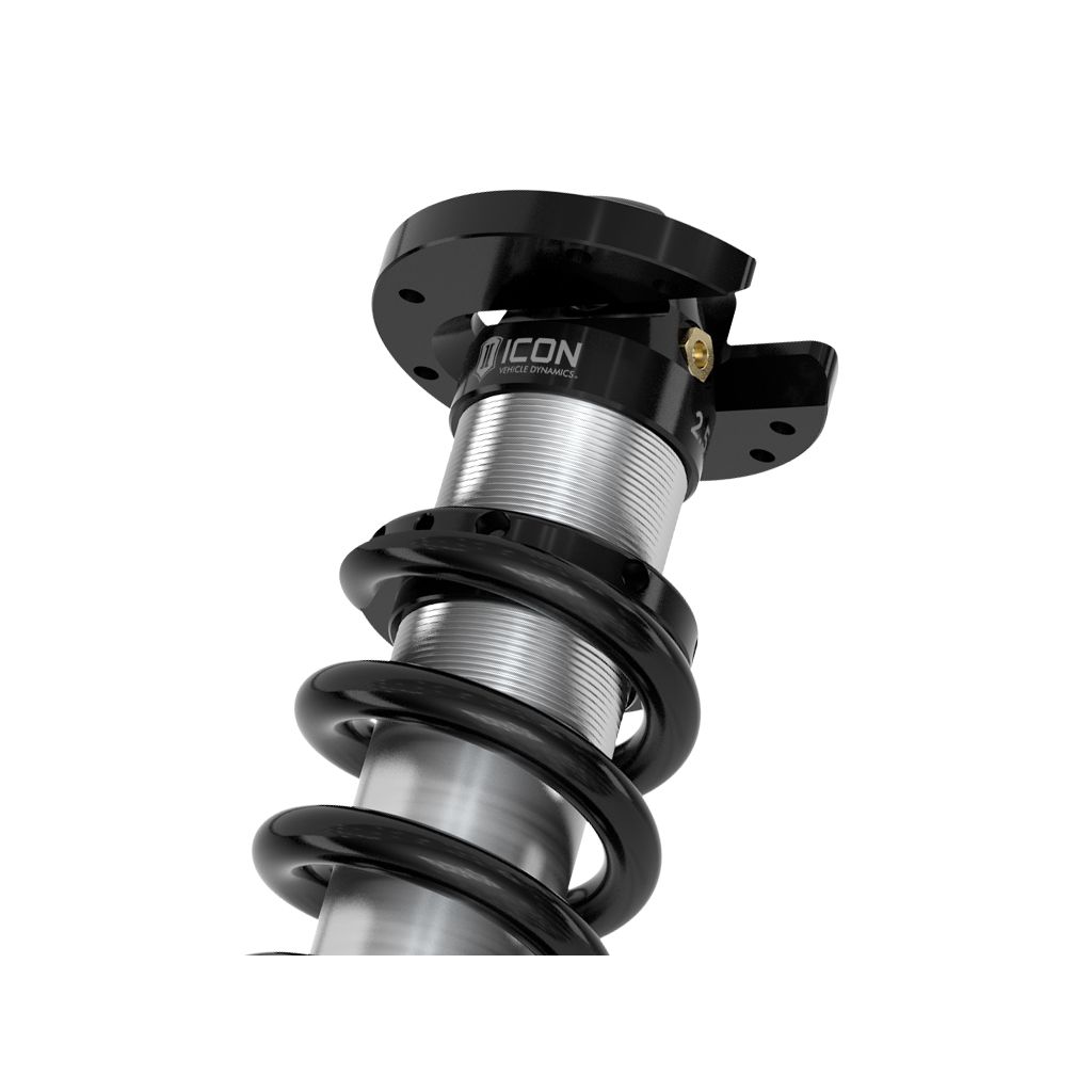 ICON Vehicle Dynamics V.S. 2.5 Series internal reservoir front coilover shocks are an incredible upgrade for the front end of the 2024-2025 Toyota Tacoma. These adjustable coilovers allow up 1.25-3” of lift height adjustability, allowing the use of larger, more aggressive wheel and tire combinations. ICON’s Vehicle-specific shock length and valving, their large 2.5” shock body with increased piston surface area over stock components, and their pairing with an ICON front differential drop (4WD only), yield the maximum travel possible along with superior ride quality and suspension performance both on- and off-road. When paired with ICON 2.0 or 2.5 Aluminum Series rear shock absorbers vehicle control will be balanced front to rear, resulting in the best overall driving experience for your Toyota Tacoma.