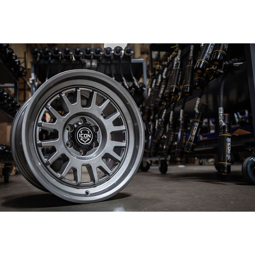 ICON Alloys Anza, Gun Metal, 17 x 8.5 / 6 x 5.5, 0mm Offset, 4.75″ BS