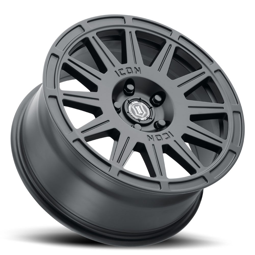 ICON ALLOYS RICOCHET SATIN BLACK – 17 X 8 / 5 X 108 BOLT PATTERN / 38MM OFFSET / 6" BACKSPACE