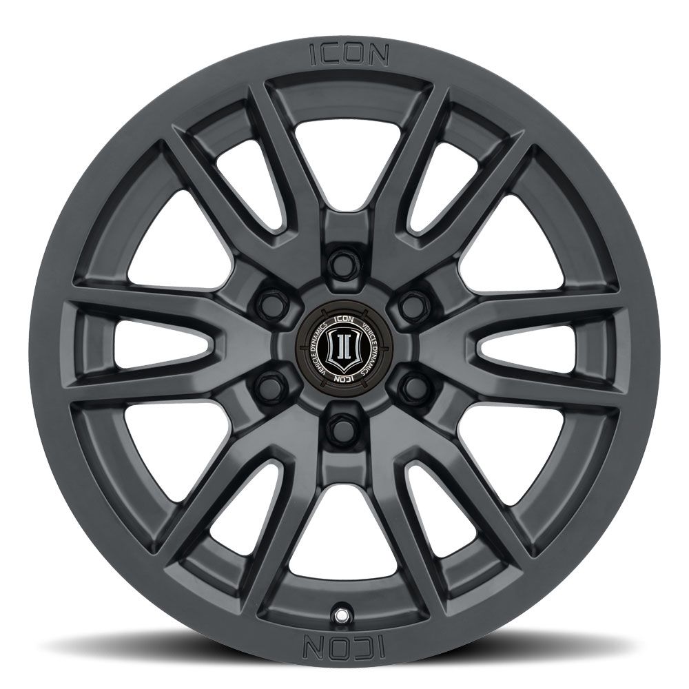 Bring a bold new look to your ride with the all-new ICON Alloys VECTOR 6! Combining sharp lines, a concave spoke design, and "ICON-optimized" dimensions, these wheels will increase both the form and function of your Jeep, truck, or SUV. Staying true to the ICON Alloys approach, the VECTOR 6 has been engineered to maximize caliper clearance and optimize wheel position for un-hindered suspension travel and steering function. Backspace dimensions and wheel offset have been strategically developed to reduce scrub radius, improving all-around handling and ride quality and making a set of these wheels the perfect complement to an ICON Vehicle Dynamics suspension system.
