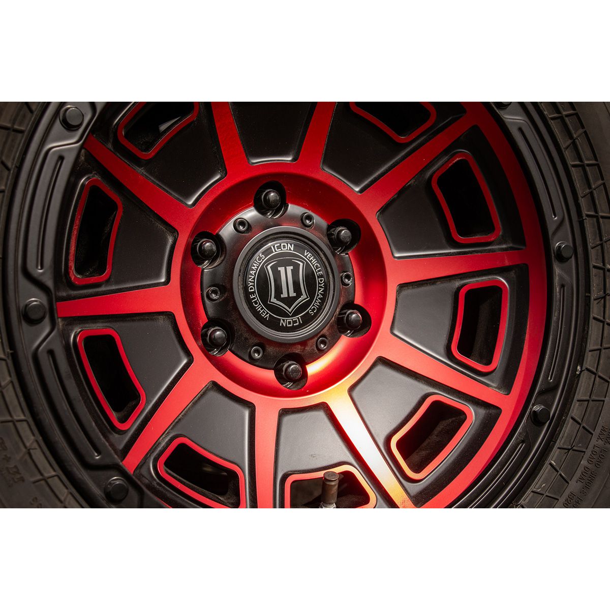 ICON ALLOYS VICTORY SATIN BLACK WITH RED TINT – 17 X 8.5 / 6 X 5.5 BOLT PATTERN / 0MM OFFSET / 4.75" BACKSPACE