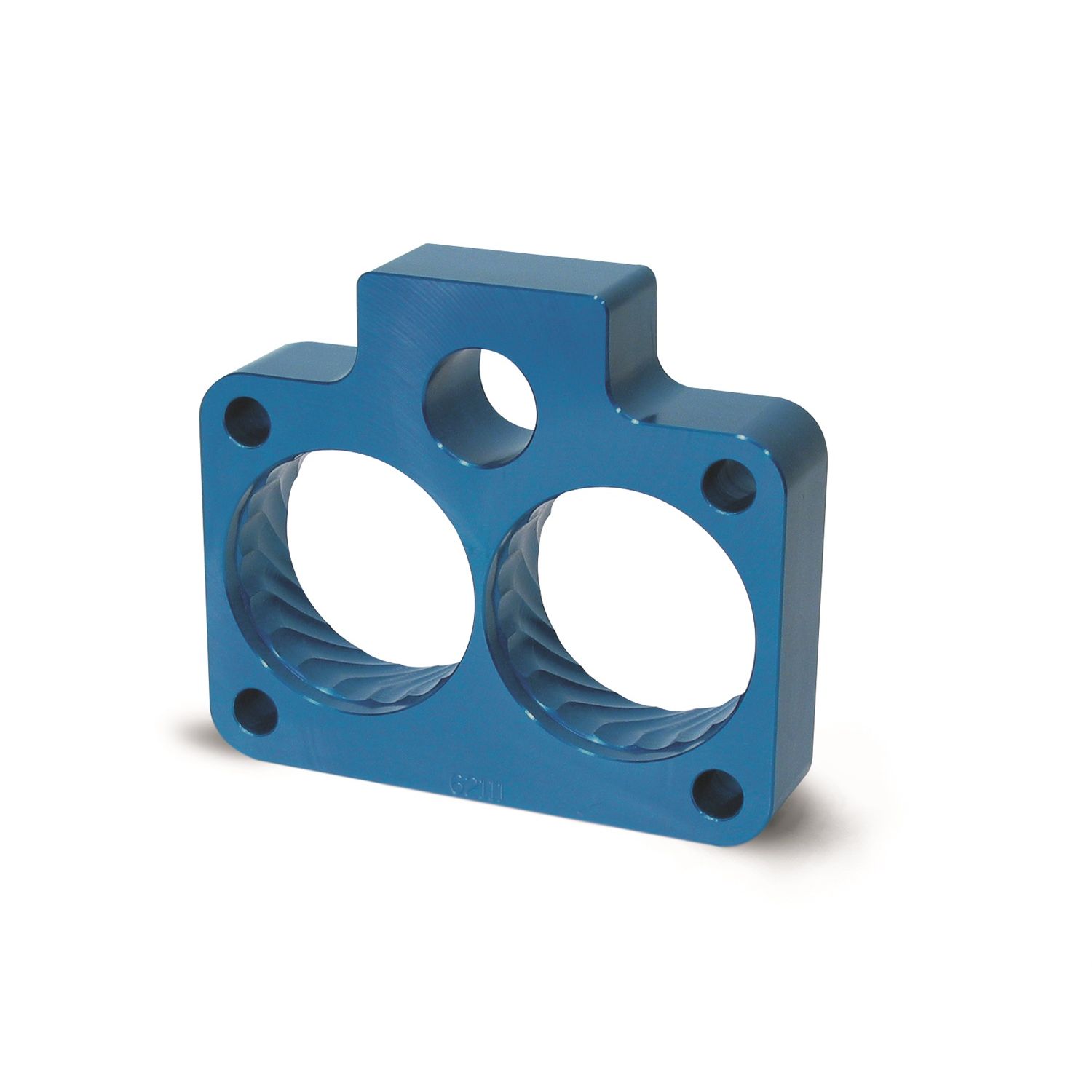 The Powr-Flo spacers bore is designed to increase the velocity of the air flow into the intake manifold. By delivering the air with more velocity it allows more air into the combustion chamber for a denser air charge. The design results in improved throttle response and impressive power gains in the mid range and top end. In addition, the increased air flow results in improved overall fuel efficiency. Simple, bolt-on installation with no other vehicle modifications required. Compatible with other aftermarket upgrades such as computer upgrades, cold air intakes, free flow exhaust systems, etc. Precision machined out of billet aluminum by Jet's in house CNC machine shop.