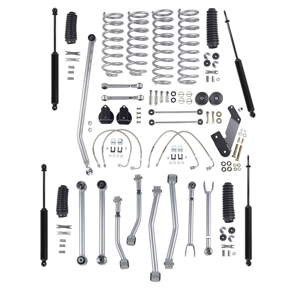 The Super-Flex Suspension System Is Designed For Enthusiasts Looking For The Best Short Arm Suspension System That Retains The Factory Mounting Locations. The Super-Flex System Features Great Ride Quality And Phenomenal Performance. Features Include New Rubicon Express Adjustable Upper And Fixed Lower Control Arms With Our Serviceable Super-Flex Speherical Ball Joints, Replacement Lift Springs, Extended Bump Stops, Longer Front And Rear Stainless Steel Brake Lines.