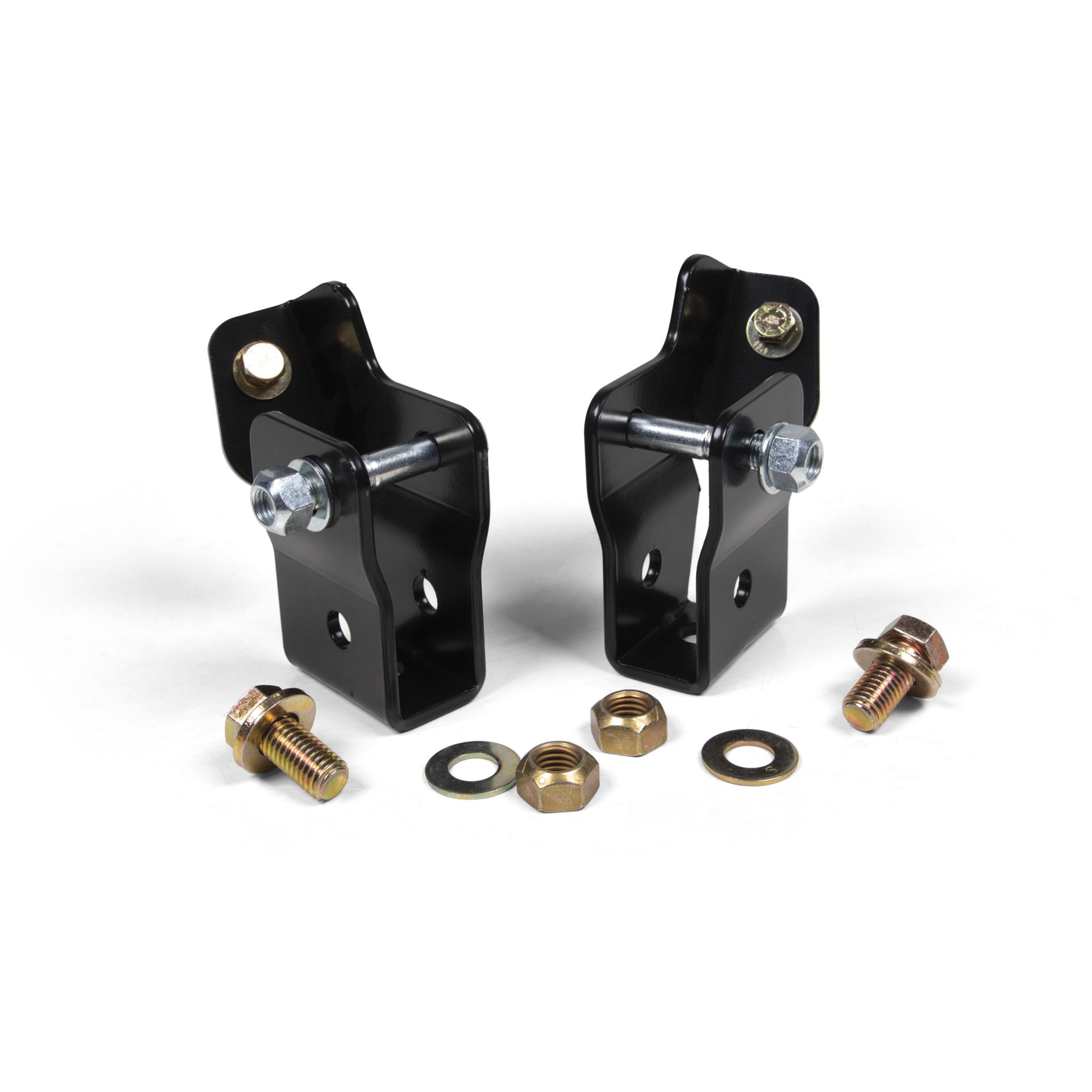 Extend the shock mounts on your Jeep Wrangler JL with these JKS Shock Extension Brackets. The heavy duty design extends the factory shock mounts 2", allowing use of factory shocks with up to 2.5" of lift. Durable powder coated finish provides excellent corrosion resistance. Easy, bolt-on installation requires no modifications.
