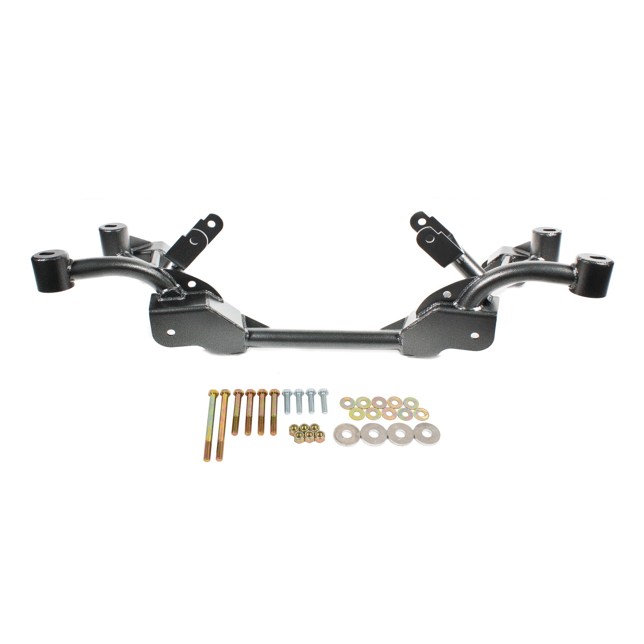 Reduce weight, increase frontend rigidity, and swap a modern LS Chevy engine into your F-body with a Tubular K-members from BMR Suspension. BMR Tubular K-Members are designed to provide a lightweight alternative to the heavy and bulky factory K-member. Manufactured from 1-1/2-inch x 0.120 wall DOM steel tubing and 3/16-inch laser cut, CNC-formed steel plates, BMRs K-members give you a lightweight, extremely strong K-member. Every BMR K-member is 100-percent bolt-in and requires no modifications for fitment. The K-members are built with provision for either factory or manual steering racks. Designed for street performance, drag race, and road race applications, BMR Tubular K-members drop weight and add loads of structural rigidity. BMRs unique K-member design feature integrated frame stands that replace the factory cast iron frame stands. This additional weight reduction allows us to use larger diameter tubing and thicker mounting plates for additional strength over other companies K-members. When combined with BMRs lower A-arms, a minimum weight reduction of over 30 pounds is common. With other lightweight frontend parts, weight reduction of up to 100 pounds is easily achievable. BMR Suspensions KM008 Tubular K-Member is available in black hammertone and red powdercoat for long-lasting good looks. Installation time is about 4-5 hours. Proudly made in the U.S.A.! NOTE: Not compatible with OE A-arms.