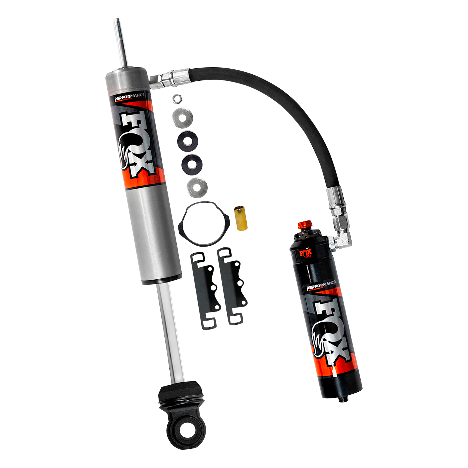 FOX's all-new Performance Elite shocks are a game changer for off road enthusiasts. PN 883-26-099 2.5" diameter remote reservoir mono-tube shocks are designed specifically for F250/F350 Super Duty trucks with 4-6" Lift for 2017-2019 and 5-7" Lift for 2020-2026 — front position. Valving is tuned specifically for Super Duty's with larger than stock aftermarket wheels and tires. Get ready to take your driving experience to a whole new level. External reservoirs provide increased oil and nitrogen capacity for fade-free operation plus hardcore appearance. Dial-in performance to match your personal driving style and truck's specs with FOX Dual Speed Compression (DSC) adjusters. You'll get improved ride quality and handling on road, with exceptional damping control and reliability off-road. 2.5" impact extruded and CNC machined 6061-T6 aluminum bodies are hard anodized to resist corrosion and weigh less than steel body shocks. End treatments and other components are black-anodized aluminum for striking contrast. Inside, extreme-duty hard-chromed, heat treated 7/8" steel shafts drive race-developed high-flow pistons and proprietary seals. Sold in pairs.