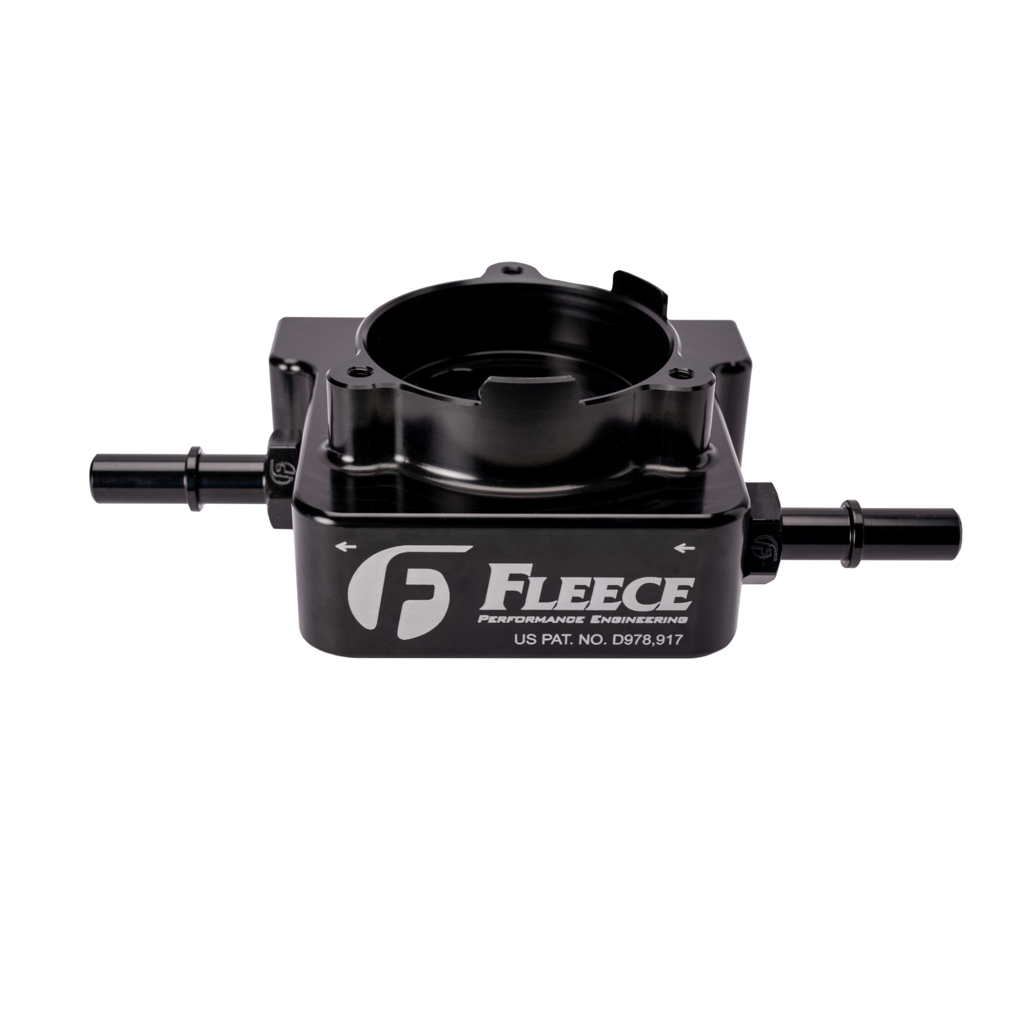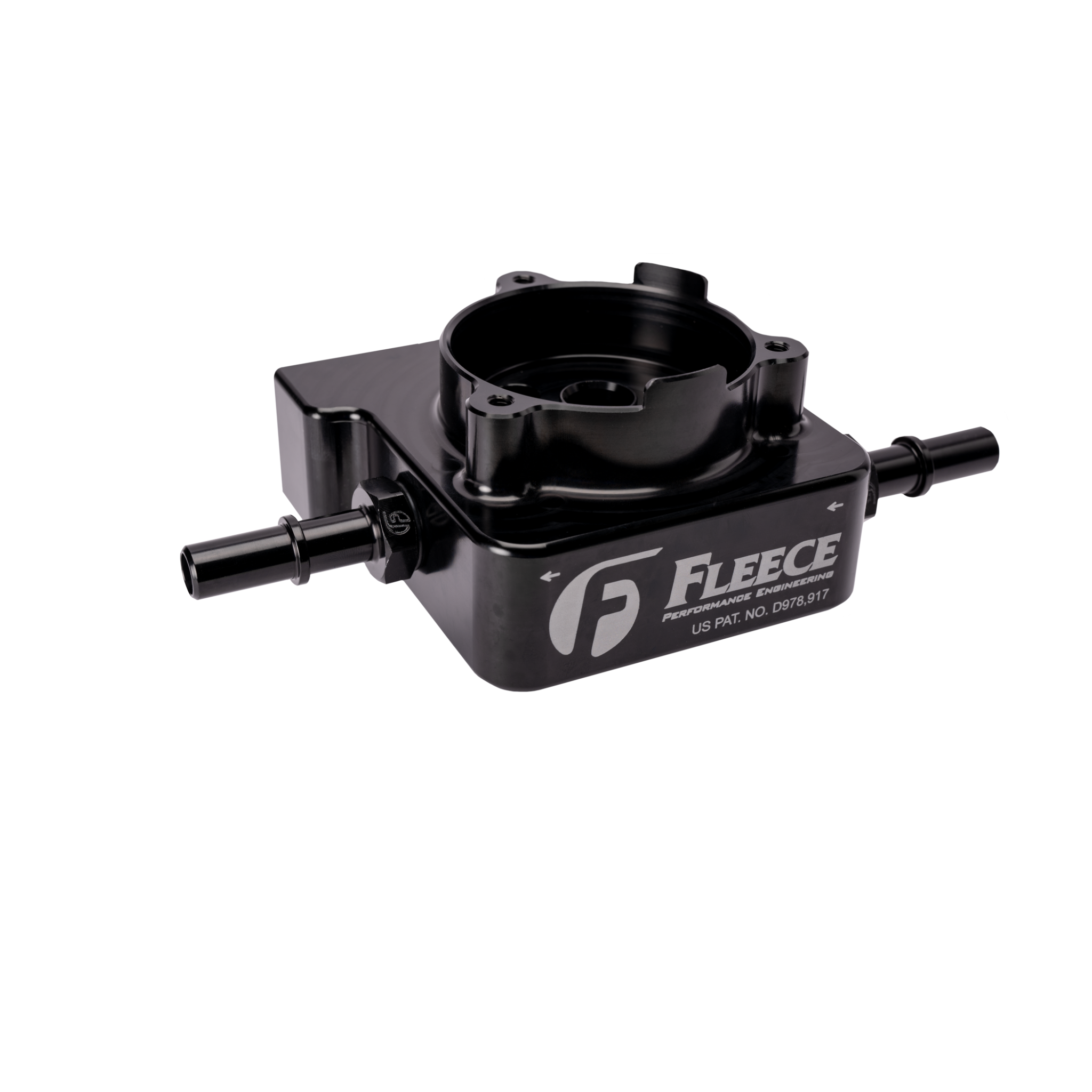 The Fleece Performance L5P fuel filter upgrade kit allows you to seamlessly change over from the stock cartridge style filter to a spin-on canister style filter. The canister filter provides for increased filter capacity and longer change intervals as well as expands your filter options. Our anodized billet aluminum fuel filter base retains the OE sandwich style heating element and includes quick disconnect fittings for an OE quality fit and finish. The new filter base installs in the same location as the stock cartridge filter base. Kit includes: Donaldson fuel filter and water separator Filter base with integral mounting Distribution filter block / filter coupler Quick disconnect fittings Fitment: 2017–2019 L5P Duramax (Short and Long Bed) 2020-2024 L5P Duramax Long Bed Cross-Reference: Replaces GM Part # 23149526, 84711317, 84996837 US PATENT. NO. D978,917